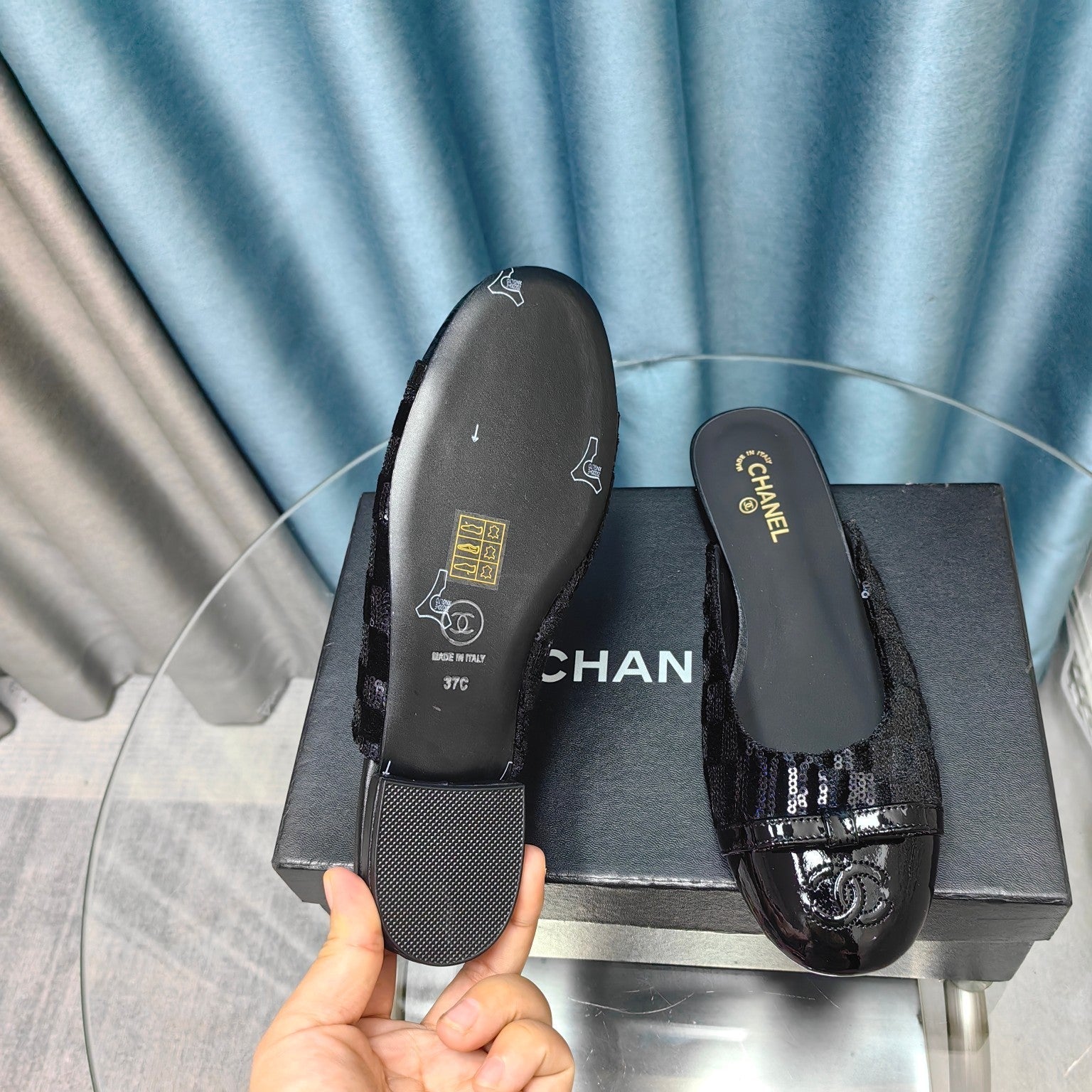 MULE IN BLACK SATIN AND LAMBSKIN