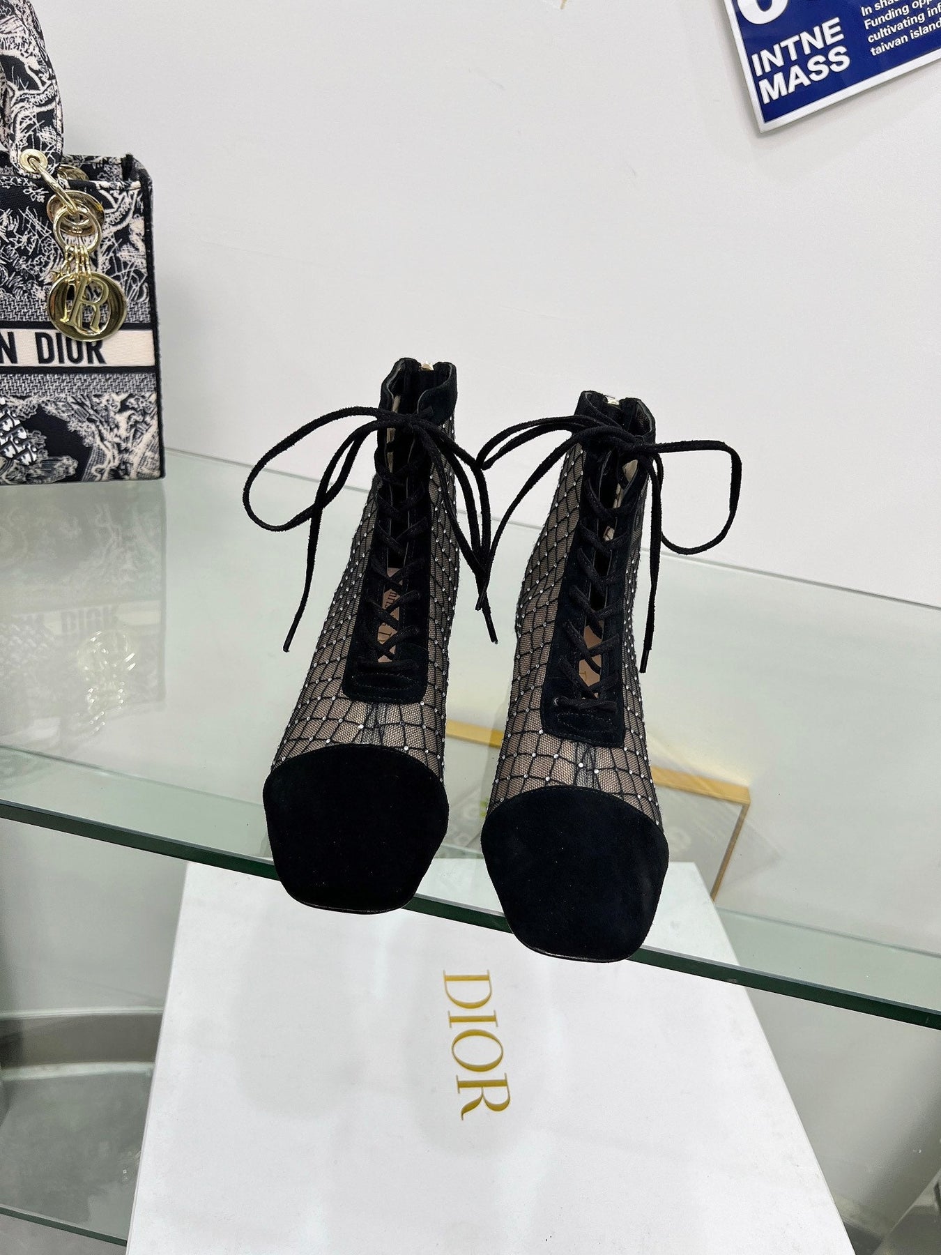 NAUGHTILY-D HEELED ANKLE BOOT IN BLACK EMBROIDERED MESH AND SUEDE 35 MM