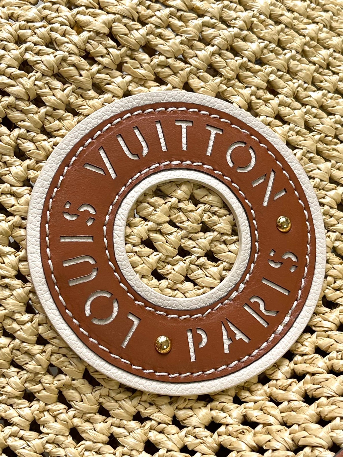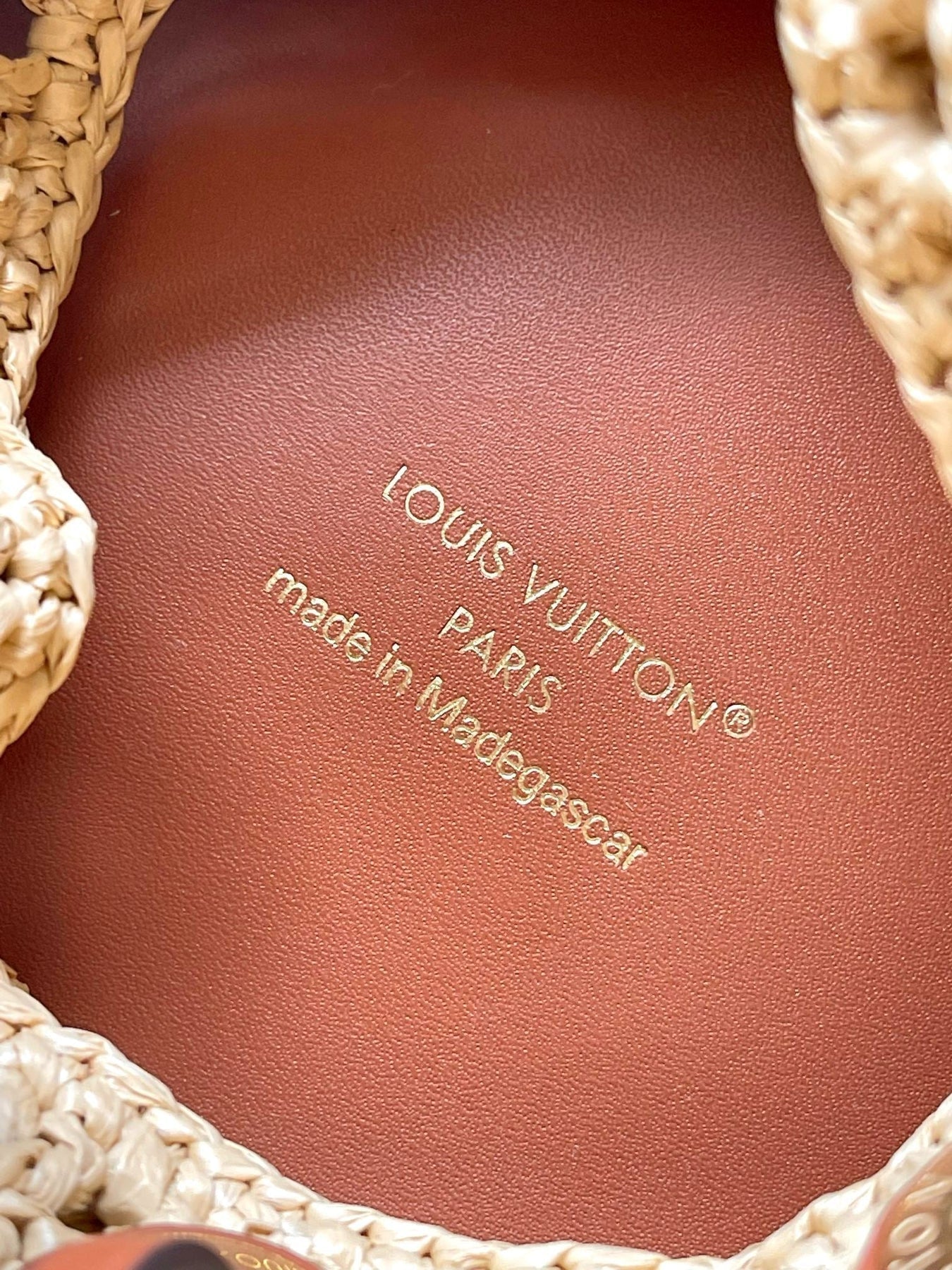 NOÉ PURSE 24 IN BEIGE CROCHETED RAFFIA AND BROWN CALFSKIN TRIM