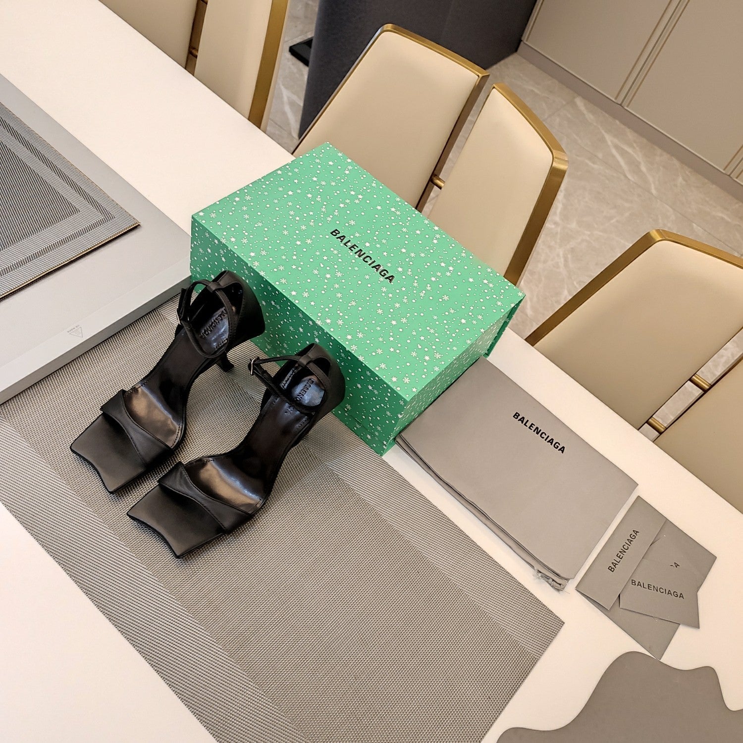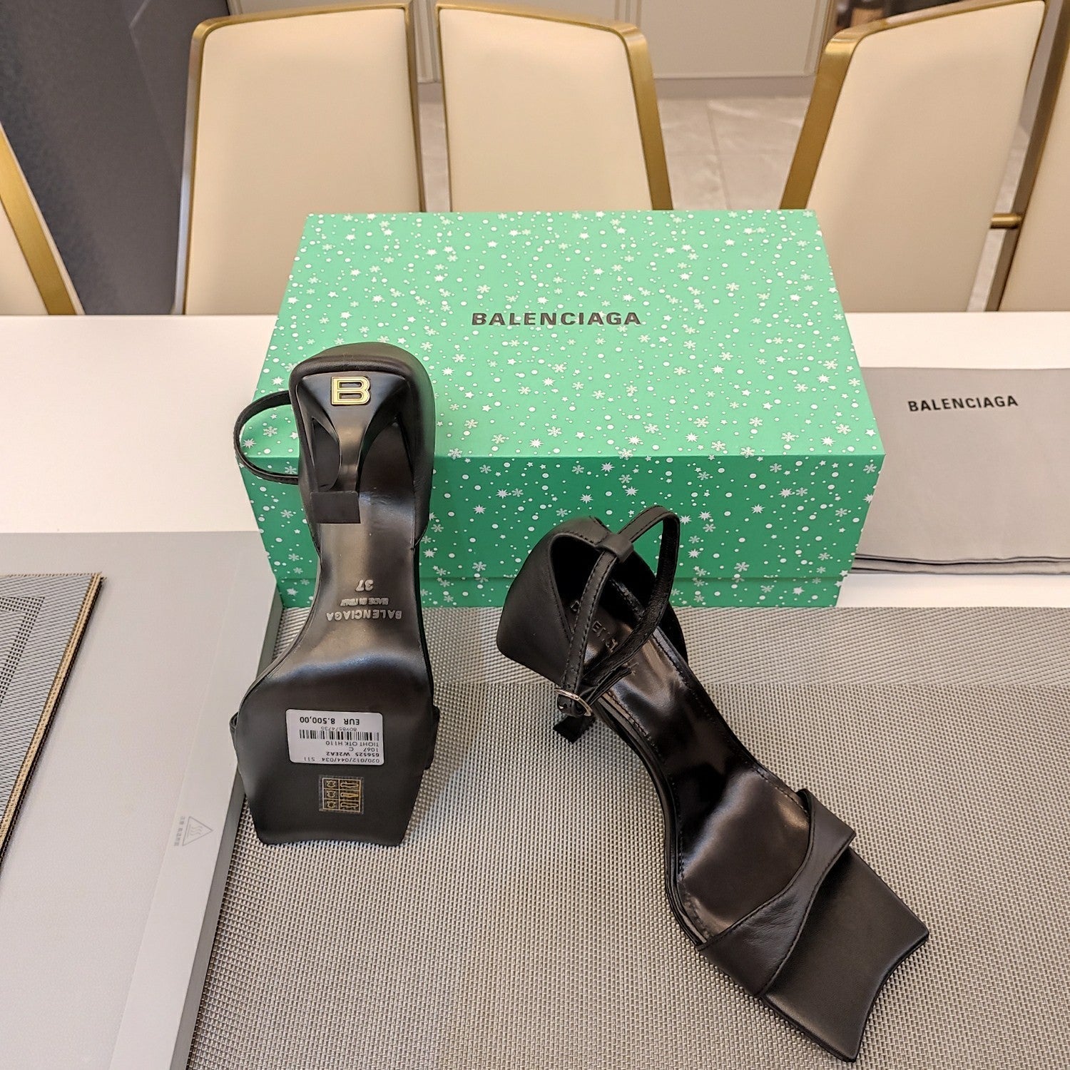 OPEN-TOE CURVED HIGH HEEL SANDALS IN BLACK SMOOTH CALFSKIN
