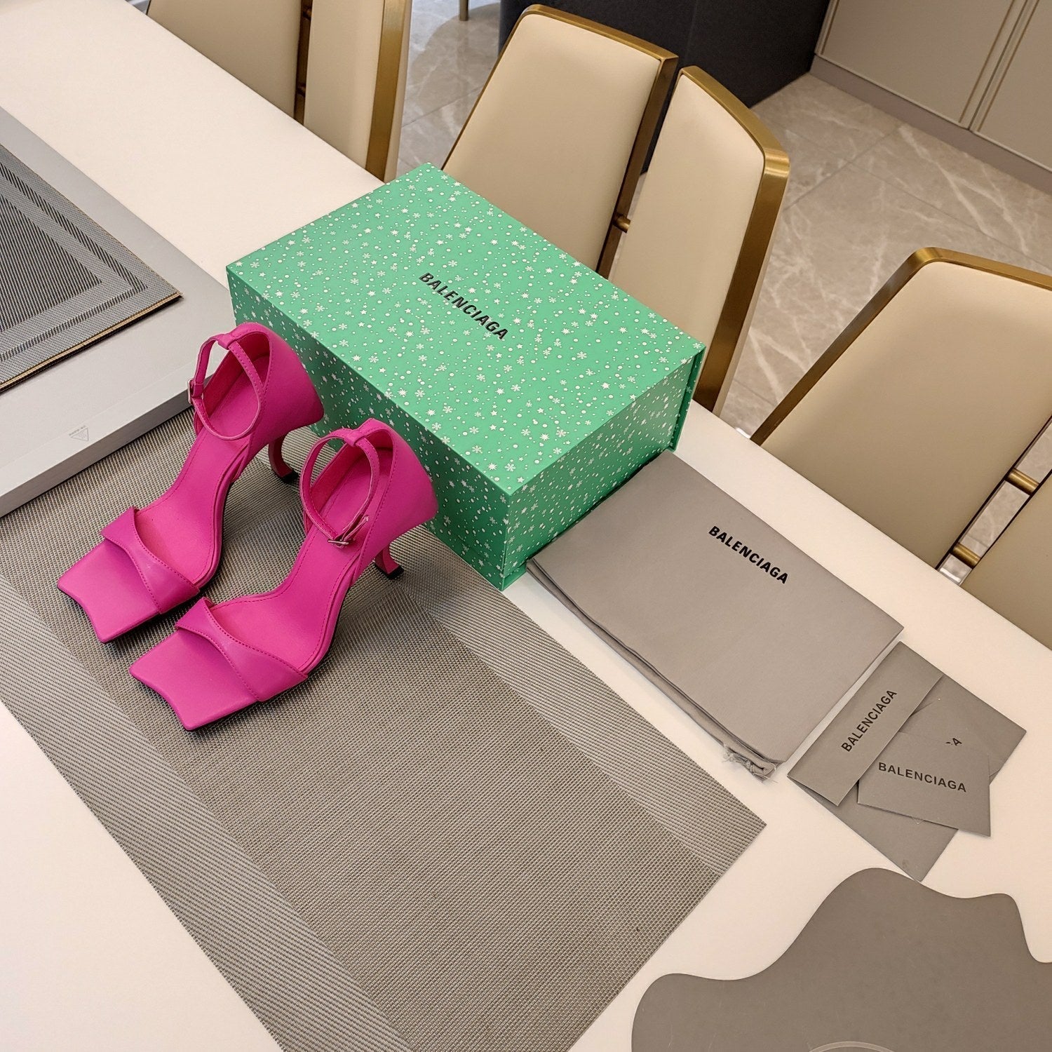 OPEN-TOE CURVED HIGH HEEL SANDALS IN DEEP PINK SMOOTH CALFSKIN