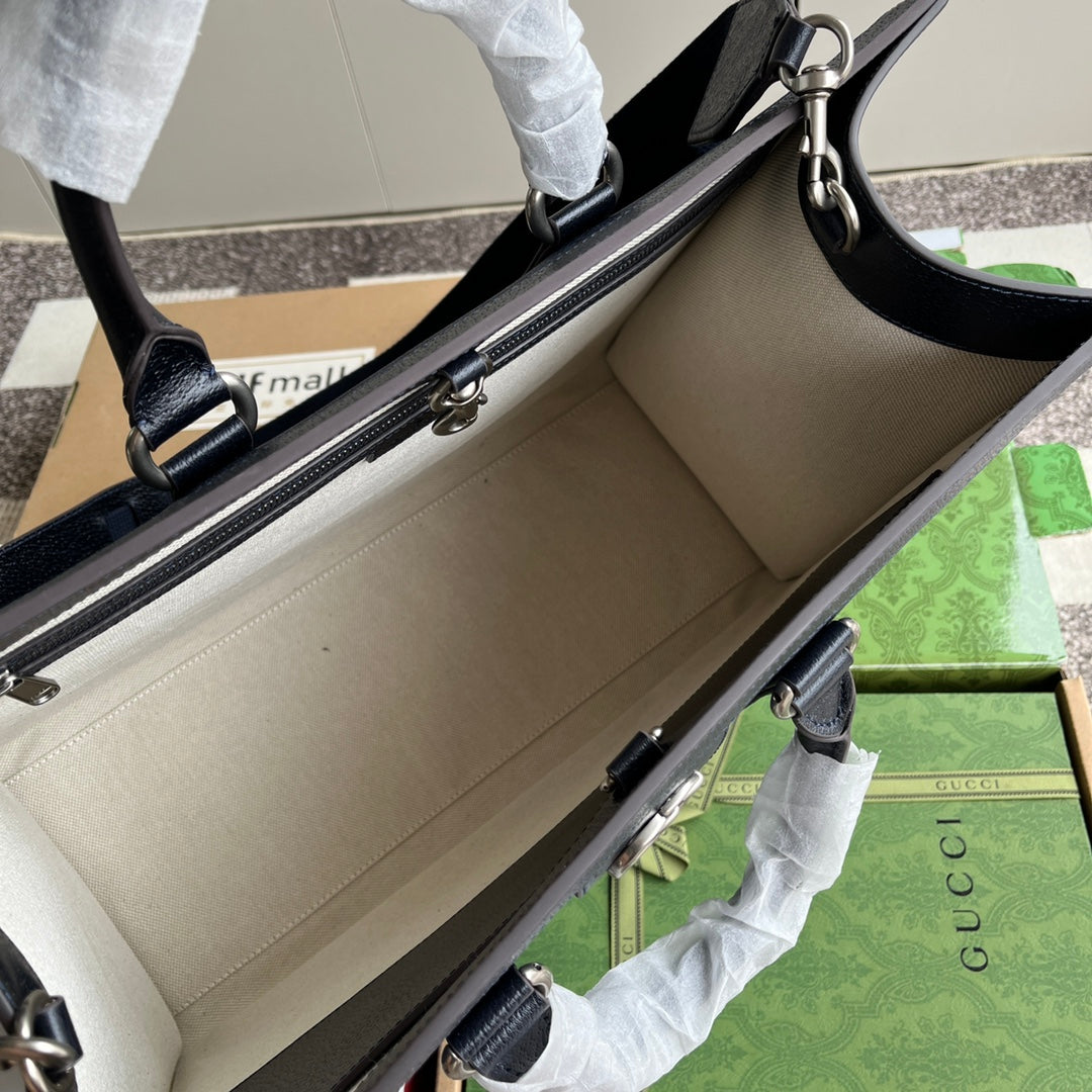 OPHIDIA LARGE TOTE BAG 43 IN DARK BLUE AND BLACK GG CALFSKIN