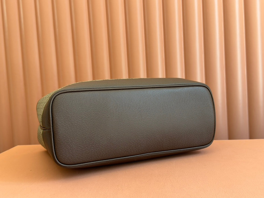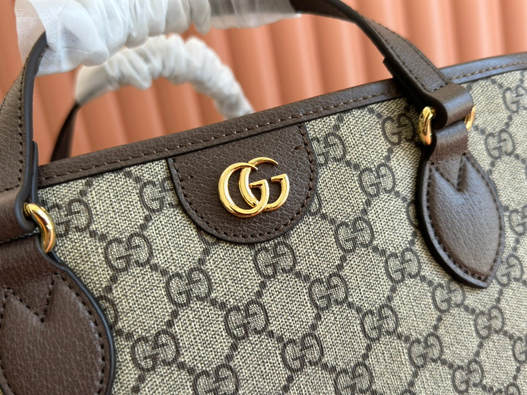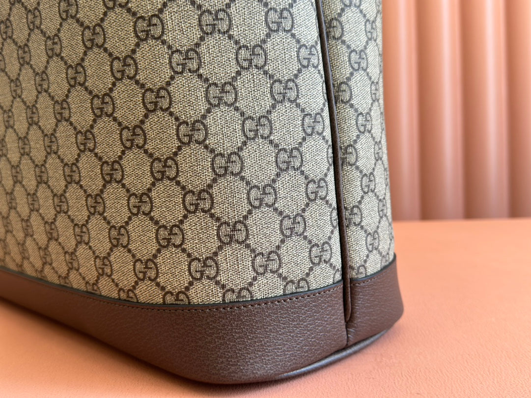 OPHIDIA MEDIUM TOTE BAG 38.5 BEIGE CANVAS AND BROWN CALFSKIN