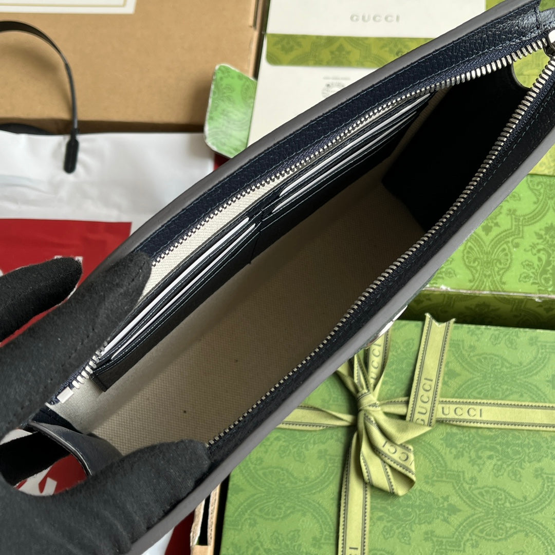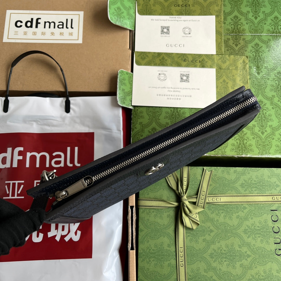 OPHIDIA POUCH 26 IN DARK BLUE MONOGRAM CANVAS AND BLACK LAMBSKIN TRIM
