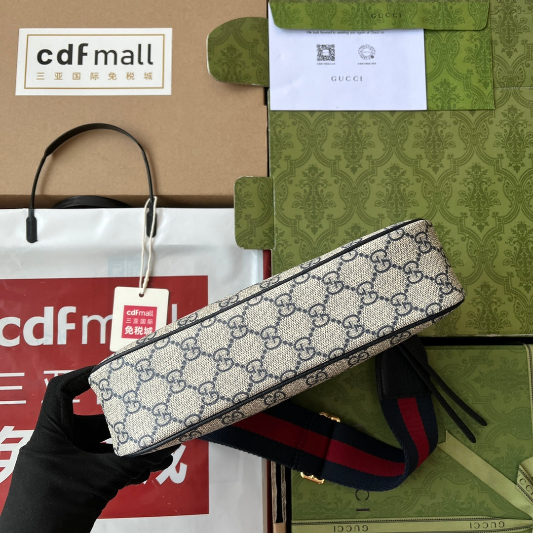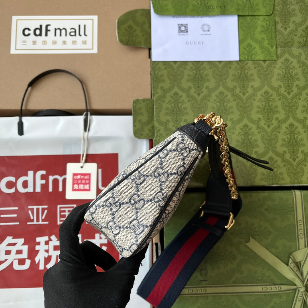 OPHIDIA SMALL SHOULDER BAG 25 IN BEIGE CANVAS AND BLACK LAMBSKIN GOLD HARDWARE