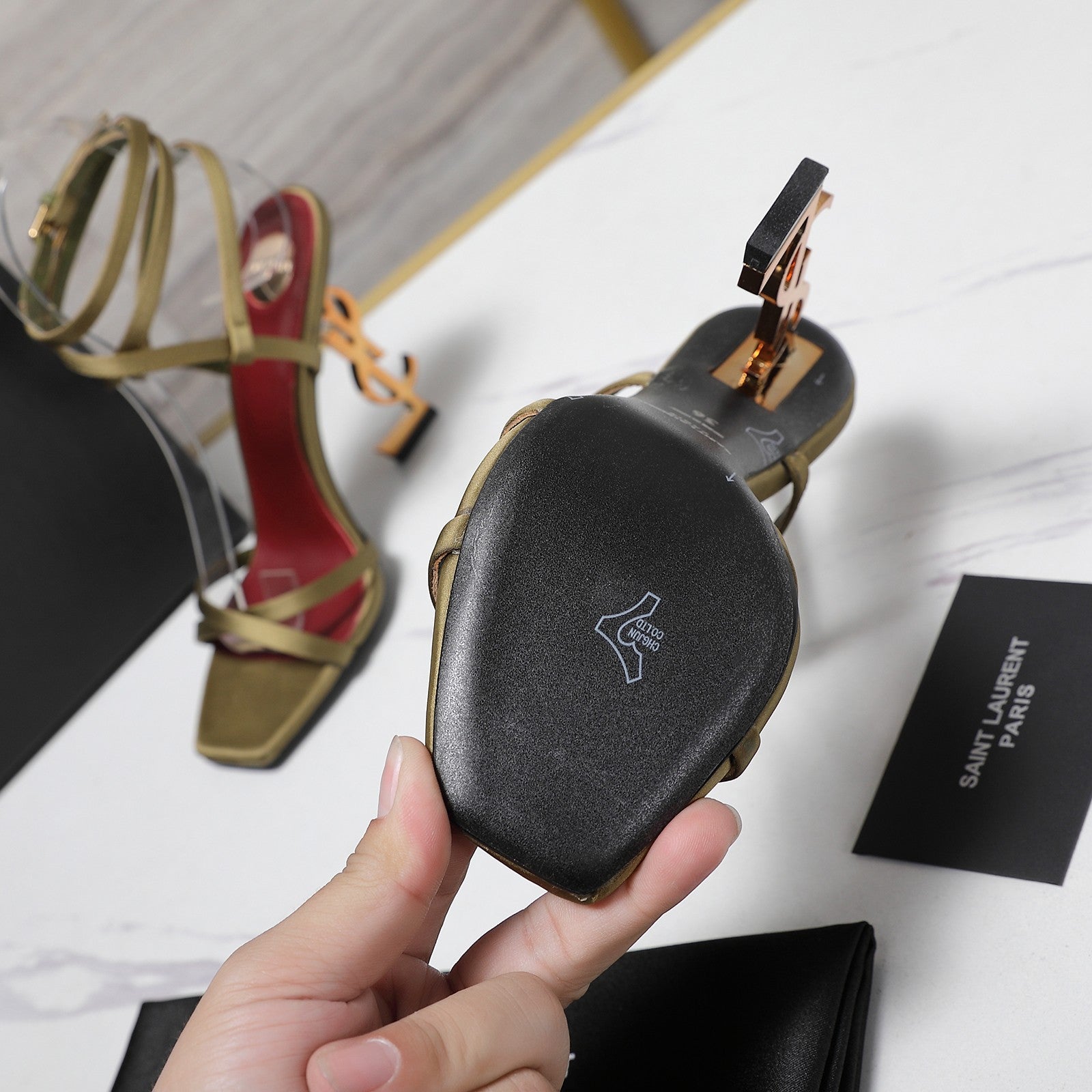 OPYUM SANDALS IN CUBA GOLD SATIN CREPE