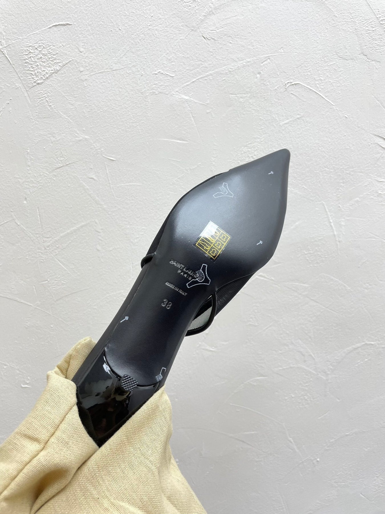 OXALIS SLINGBACK PUMPS 30 IN MESH BLACK LEATHER