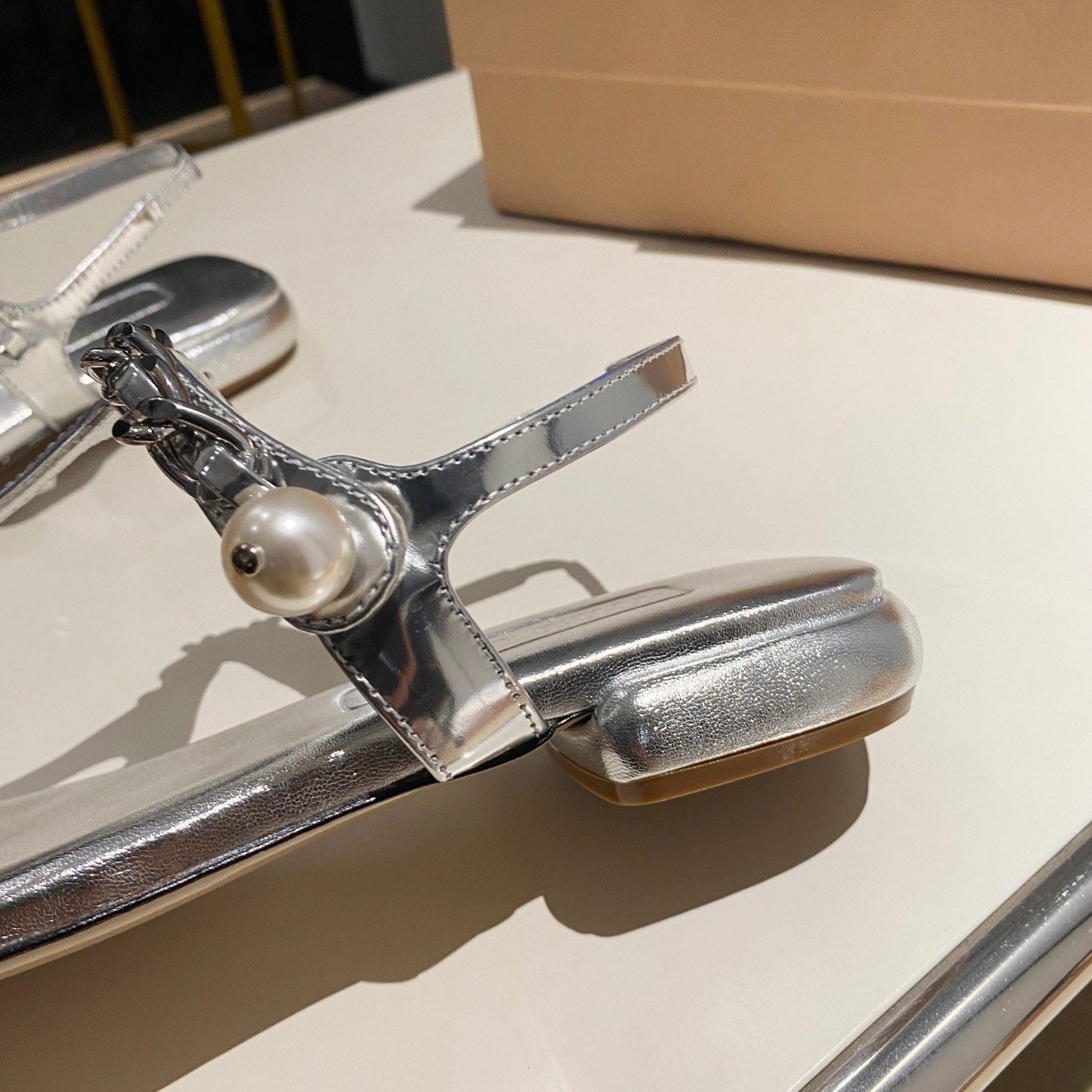 PEARL CHAIN FLIP-FLOPS SILVER LEATHER