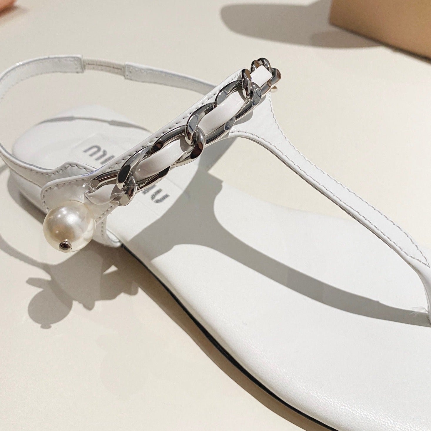 PEARL CHAIN FLIP-FLOPS SNOW COLOR LEATHER