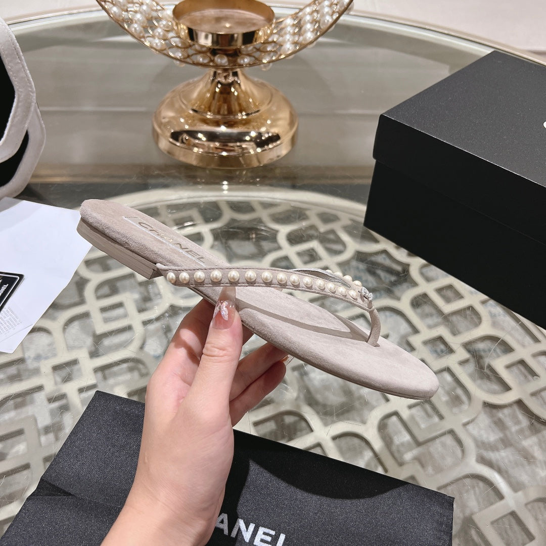 PEARL THONG SANDAL IN PALE PINK SUEDE