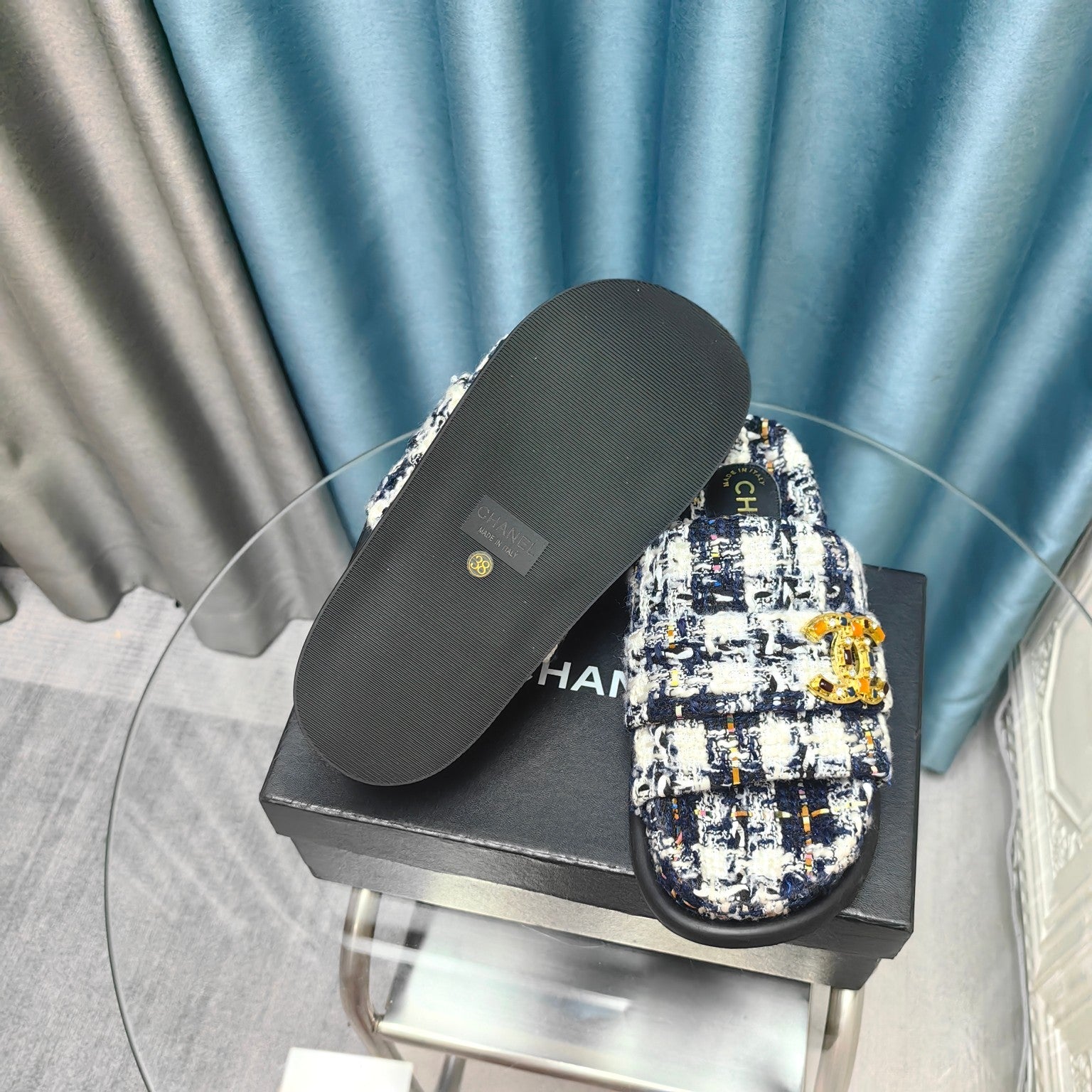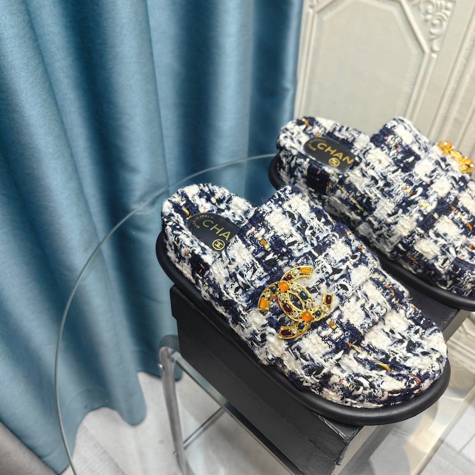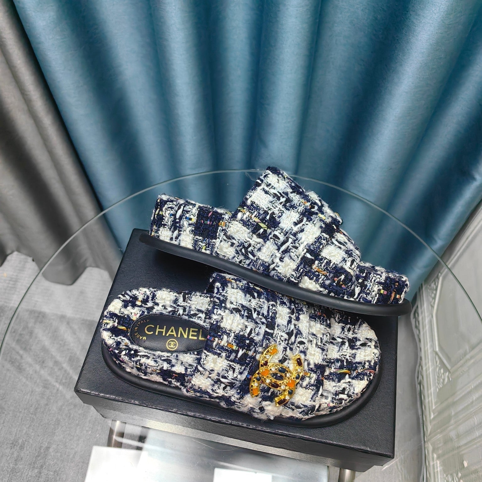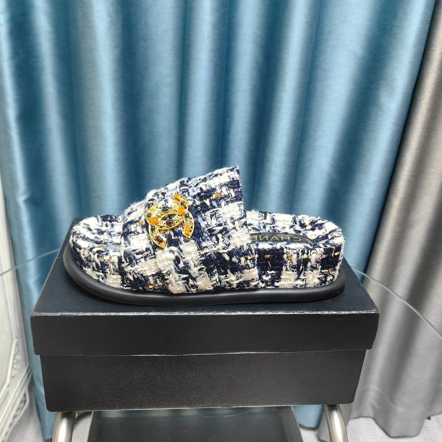 PLATFORM HEELS SANDALS IN BLACK TWEED