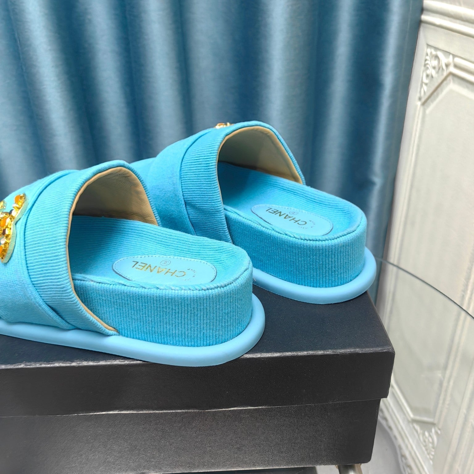 PLATFORM HEELS SANDALS IN SAPPHIRE BLUE WOOLEN FABRIC