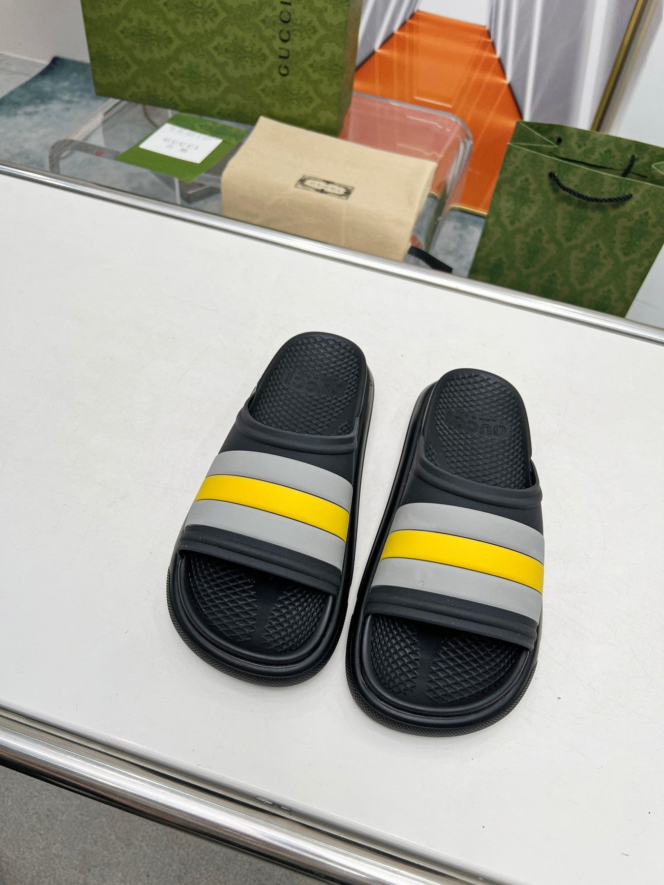 PLATFORM SLIPPERS IN BLACK MIX GRAY AND YELLOW IMPORTED TPU