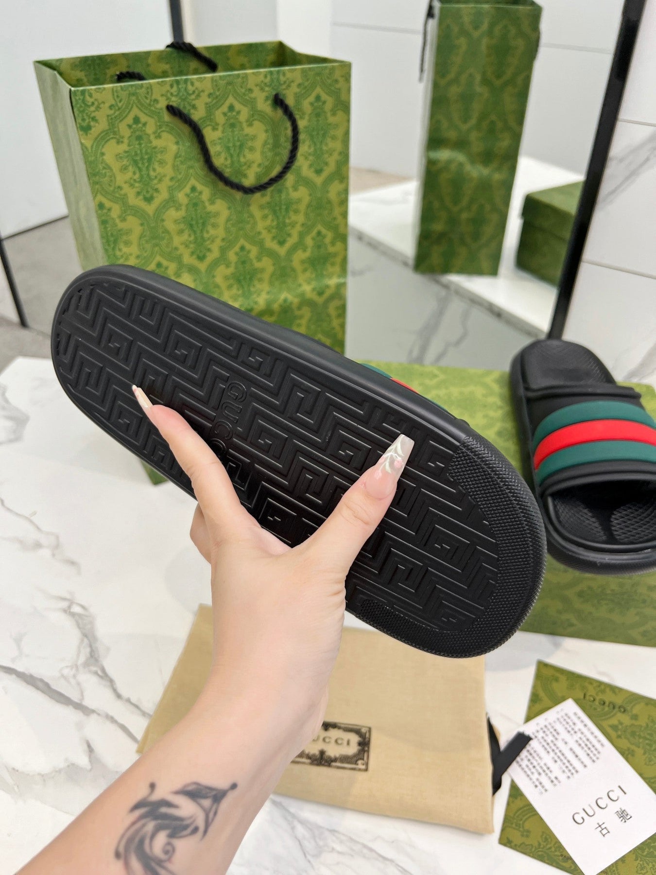 PLATFORM SLIPPERS IN BLACK MIX GREEN AND RED IMPORTED TPU
