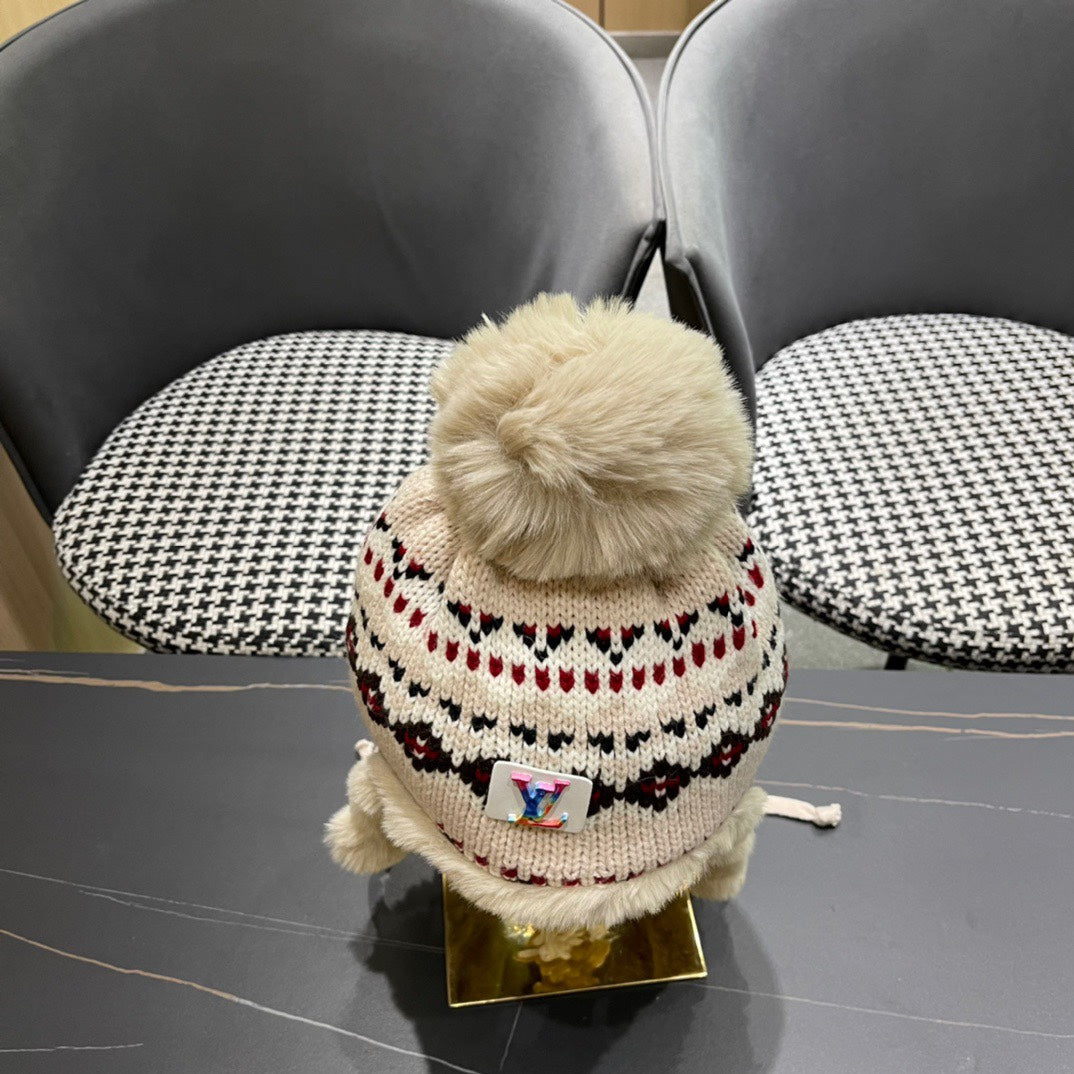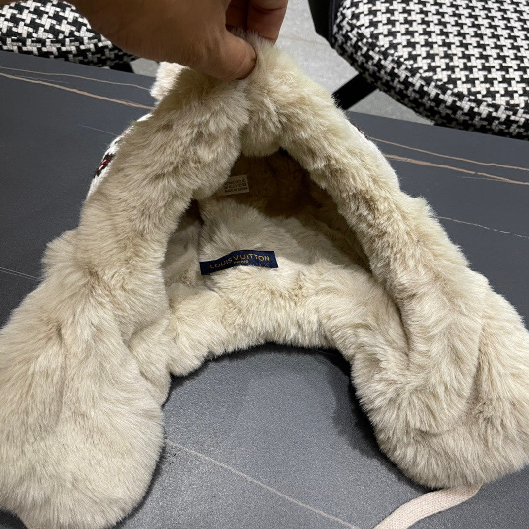PLUSH EARMUFFS HAT IN COLORFUL WOOL AND RABBIT FUR 408170