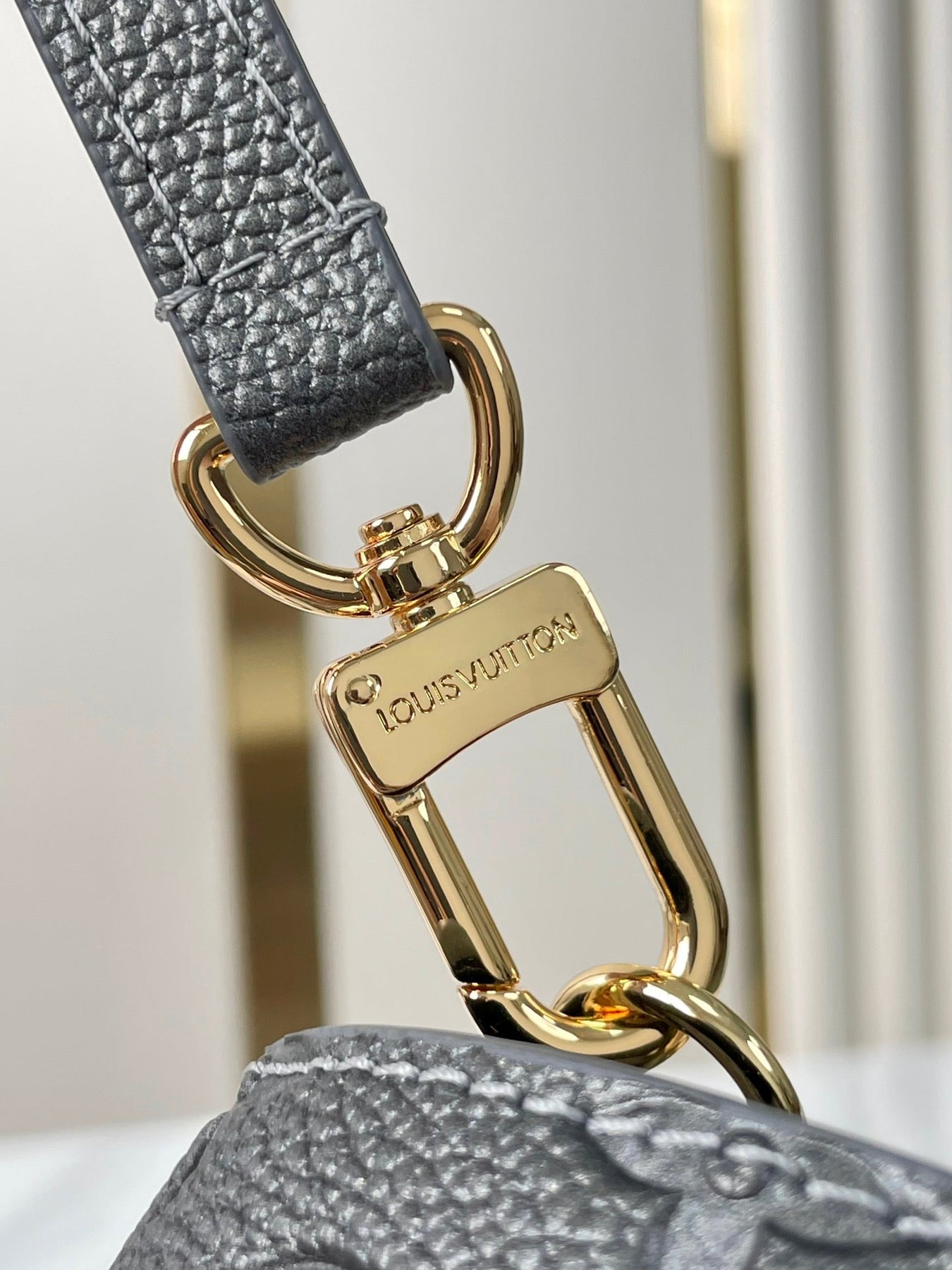 POCHETTE MÉTIS EAST WEST 21 IN GUN METAL EMBOSSED CALFSKIN GOLD HARDWARE