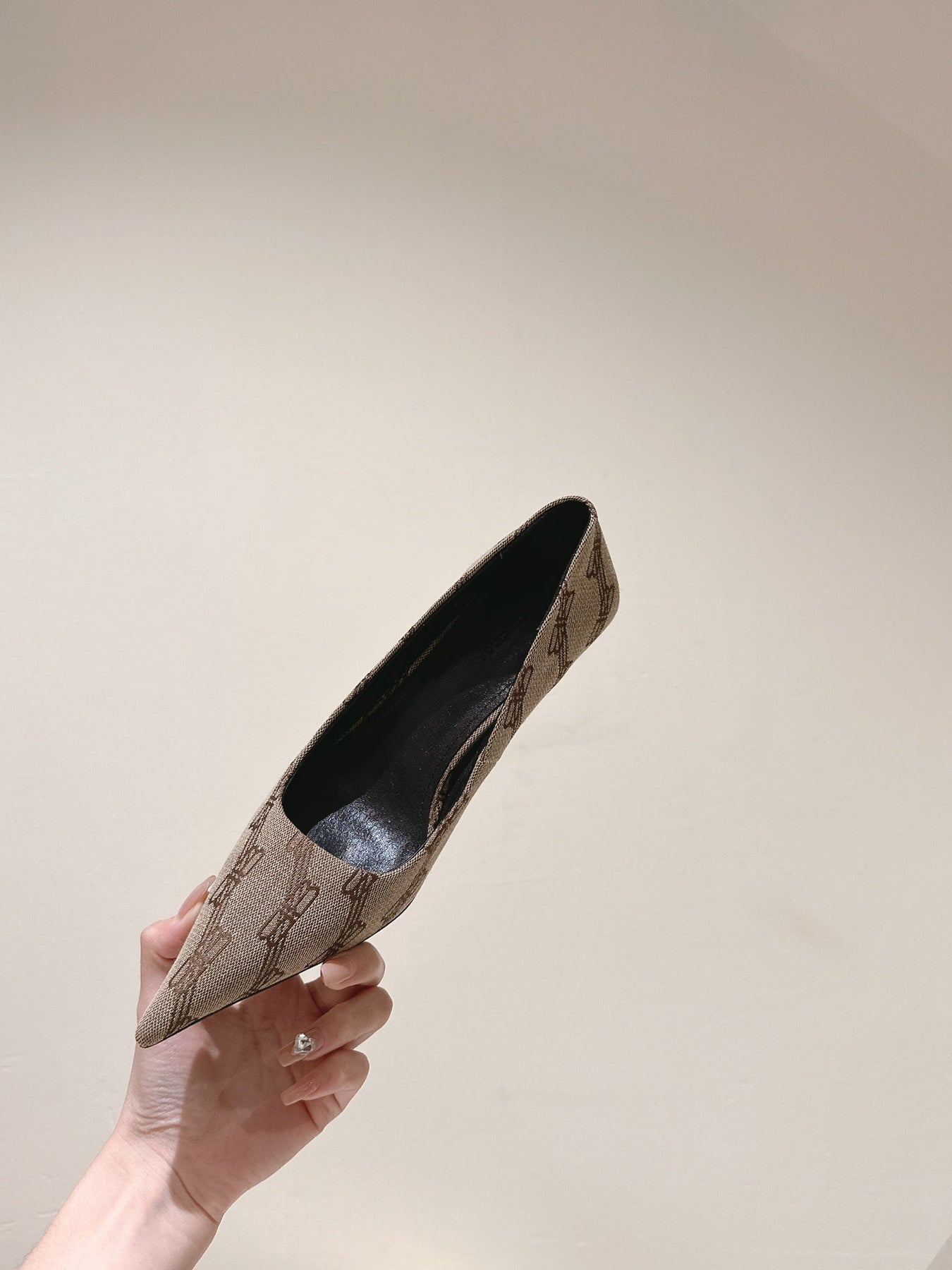 POINTED HIGH PUMPS IN BEIGE MONOGRAM JACQUARD FABRIC