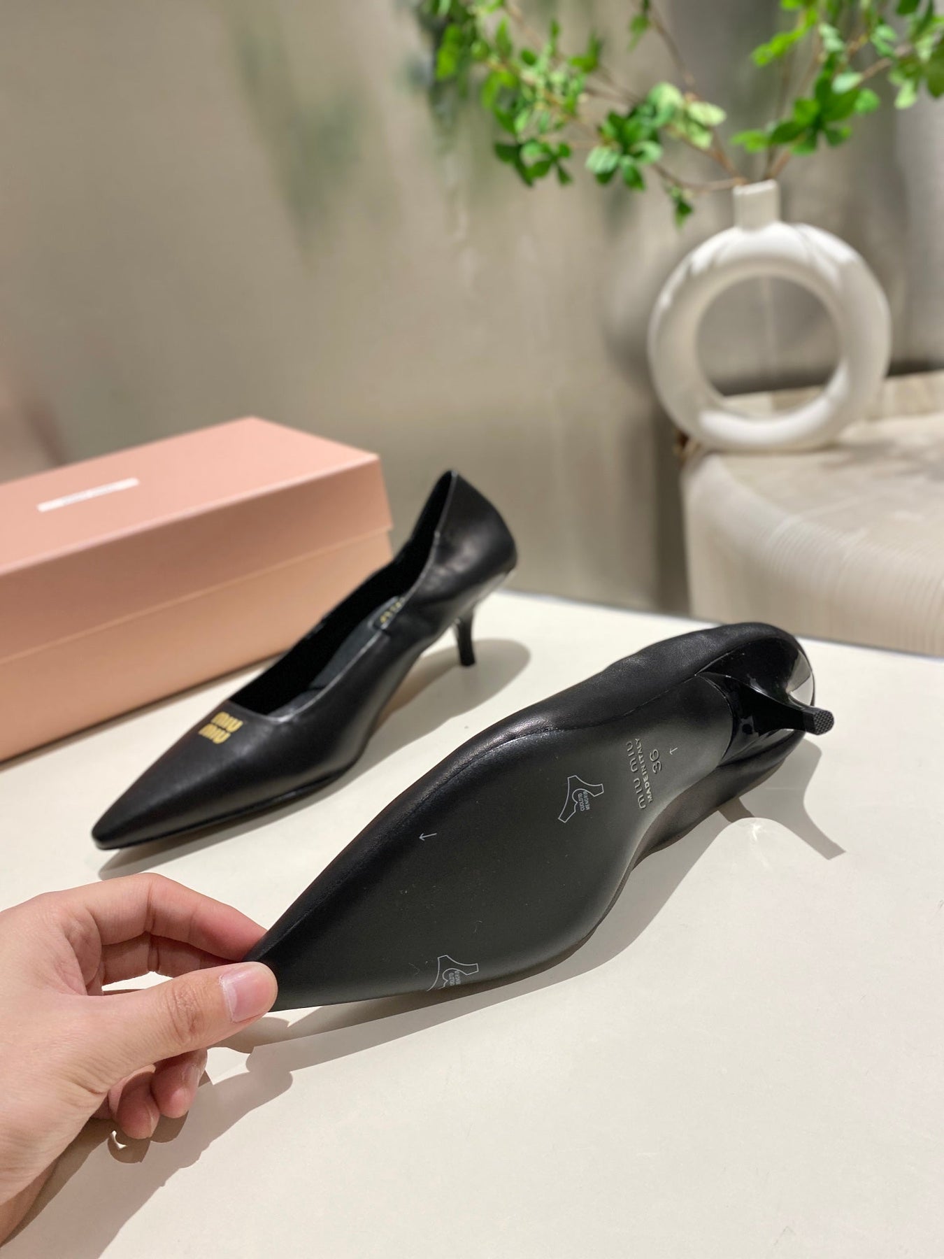 POINTED-TOE MID HEEL PUMPS IN BLACK SMOOTH LAMBSKIN