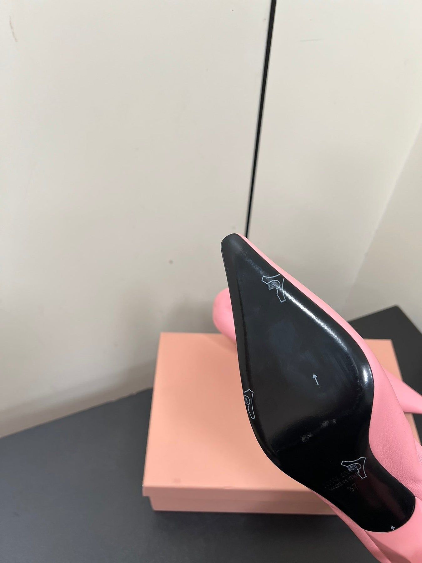 POINTED-TOE MID HEEL PUMPS IN PINK SMOOTH LAMBSKIN