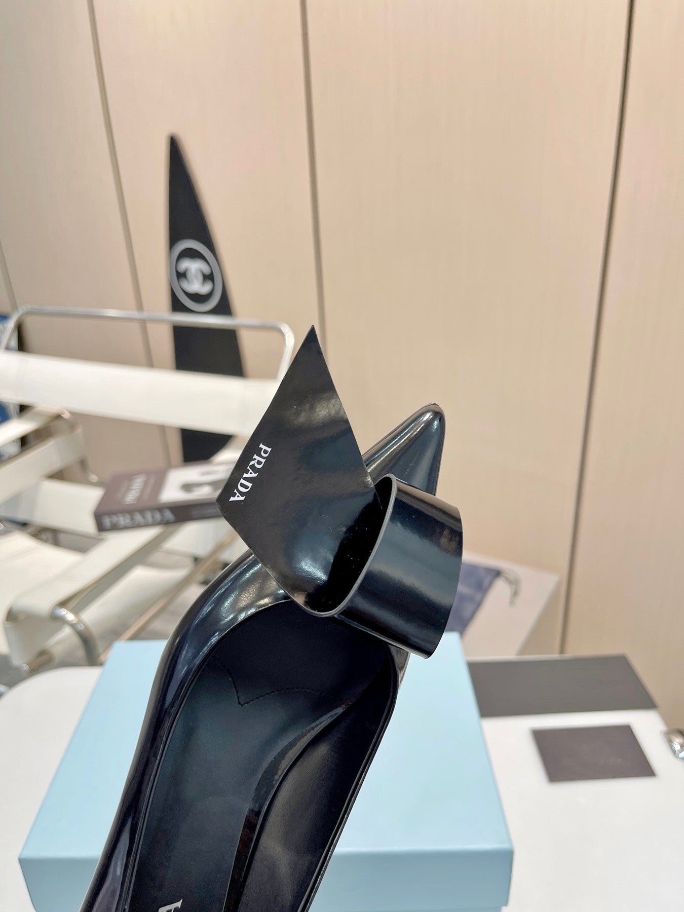 POINTED TOE PUMPS KITTEN HEEL IN BLACK GLOSSY LAMBSKIN WITH BOW