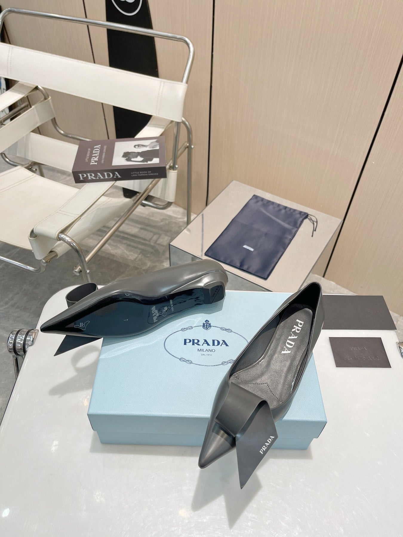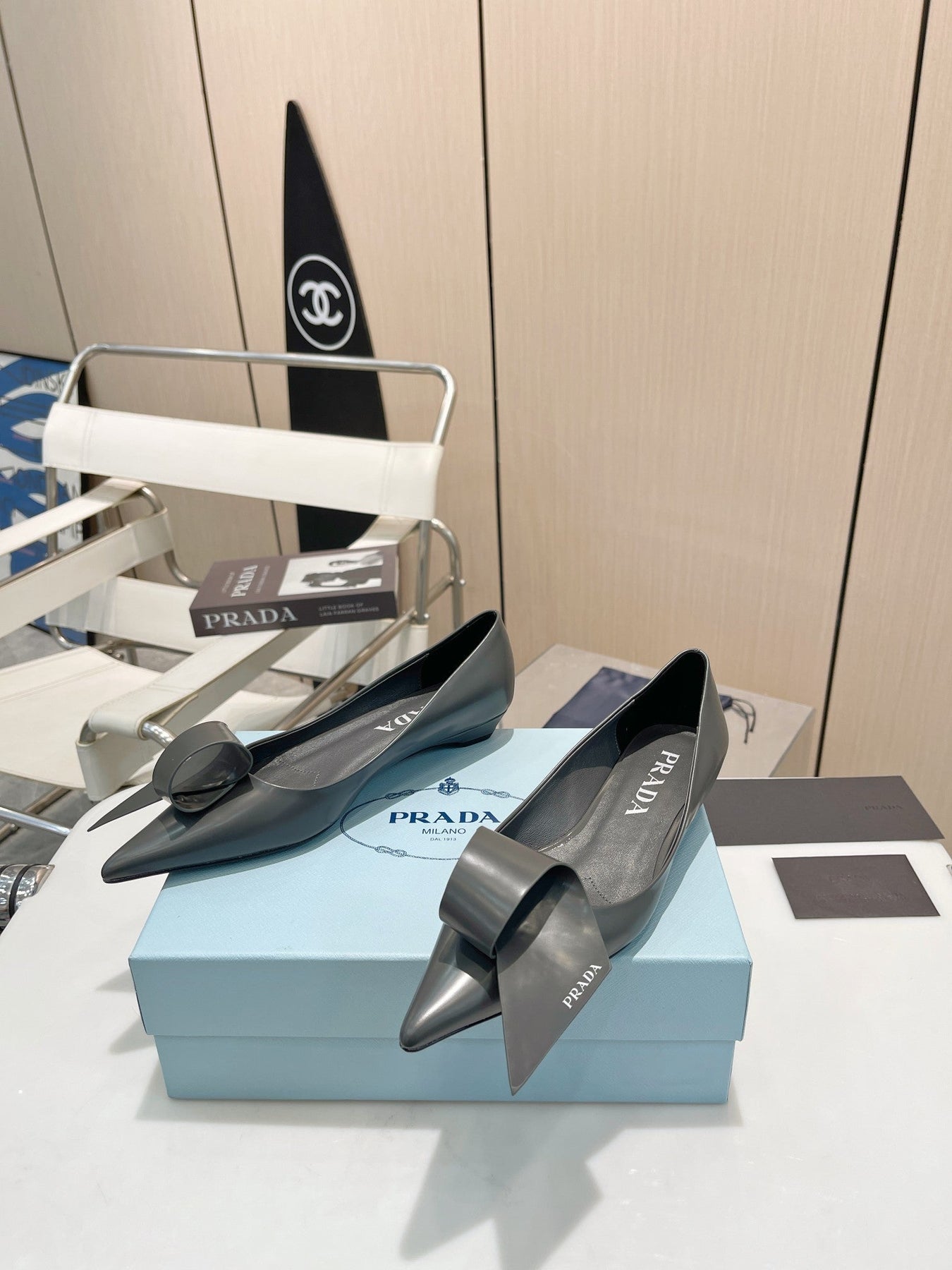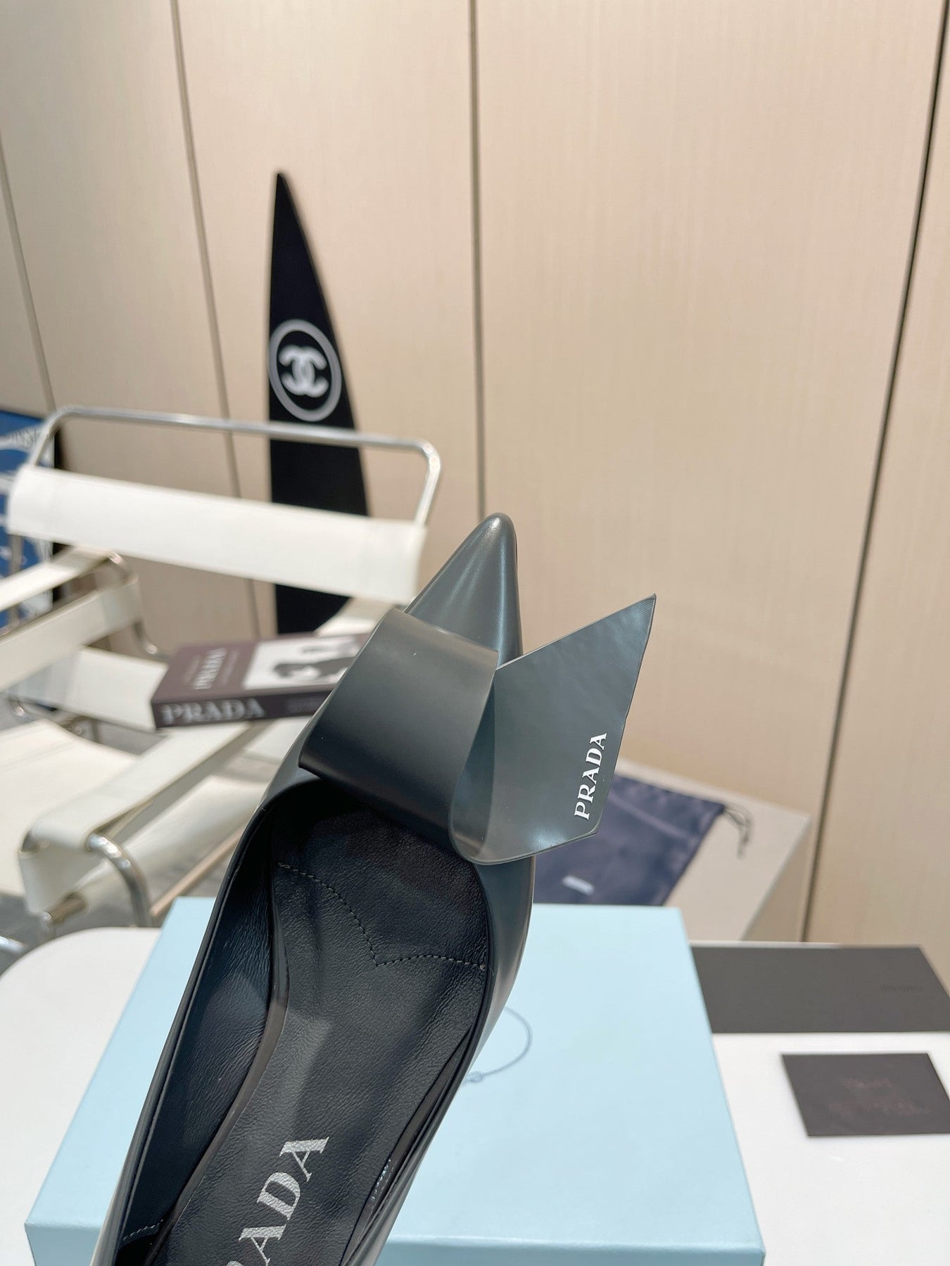 POINTED TOE PUMPS KITTEN HEEL IN GRAY GLOSSY LAMBSKIN WITH BOW