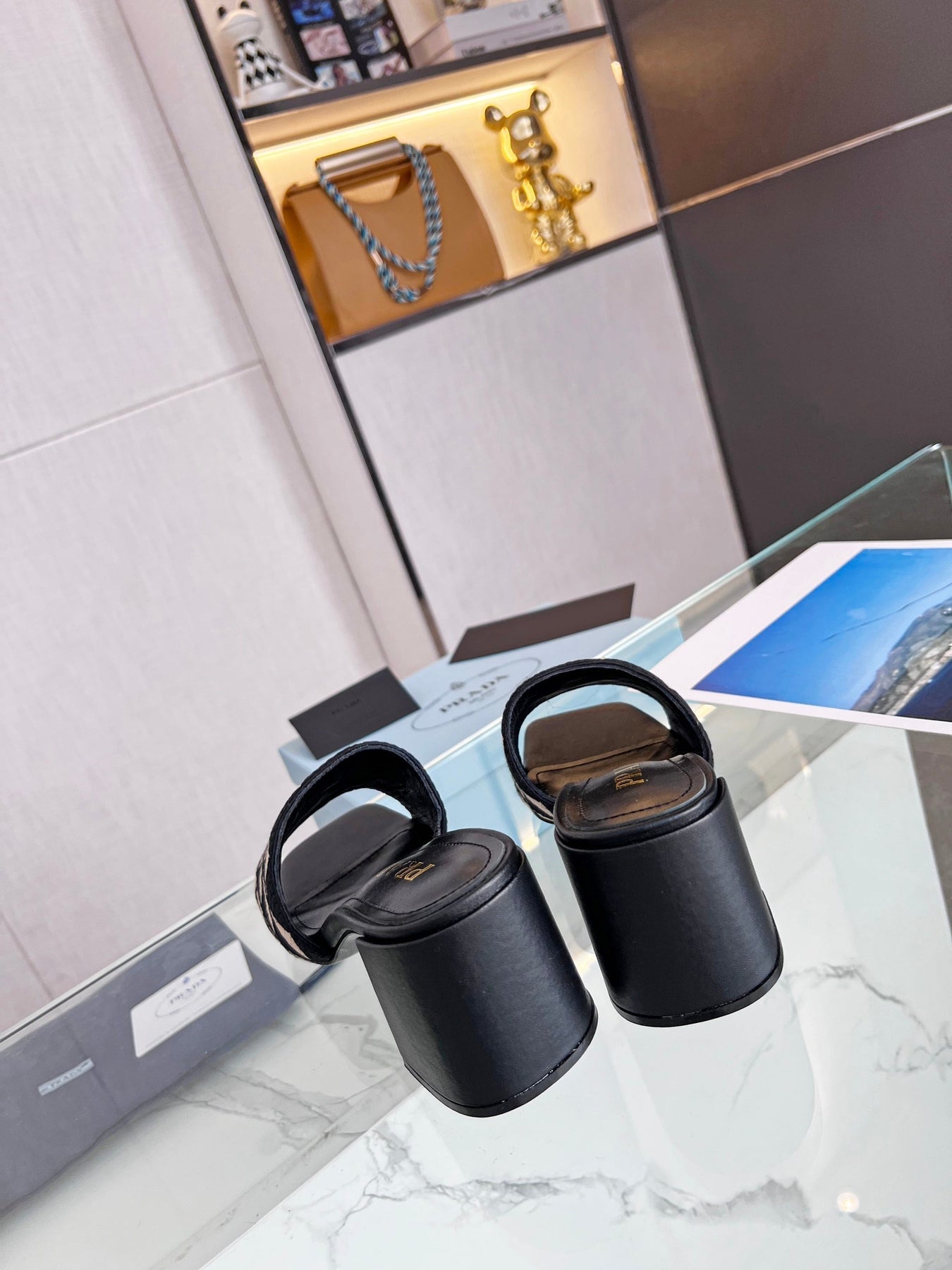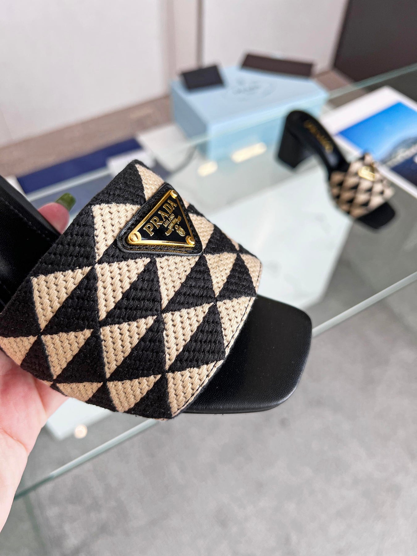 PRA EMBROIDERED SLIDES 65 BLACK AND BEIGE FABRIC