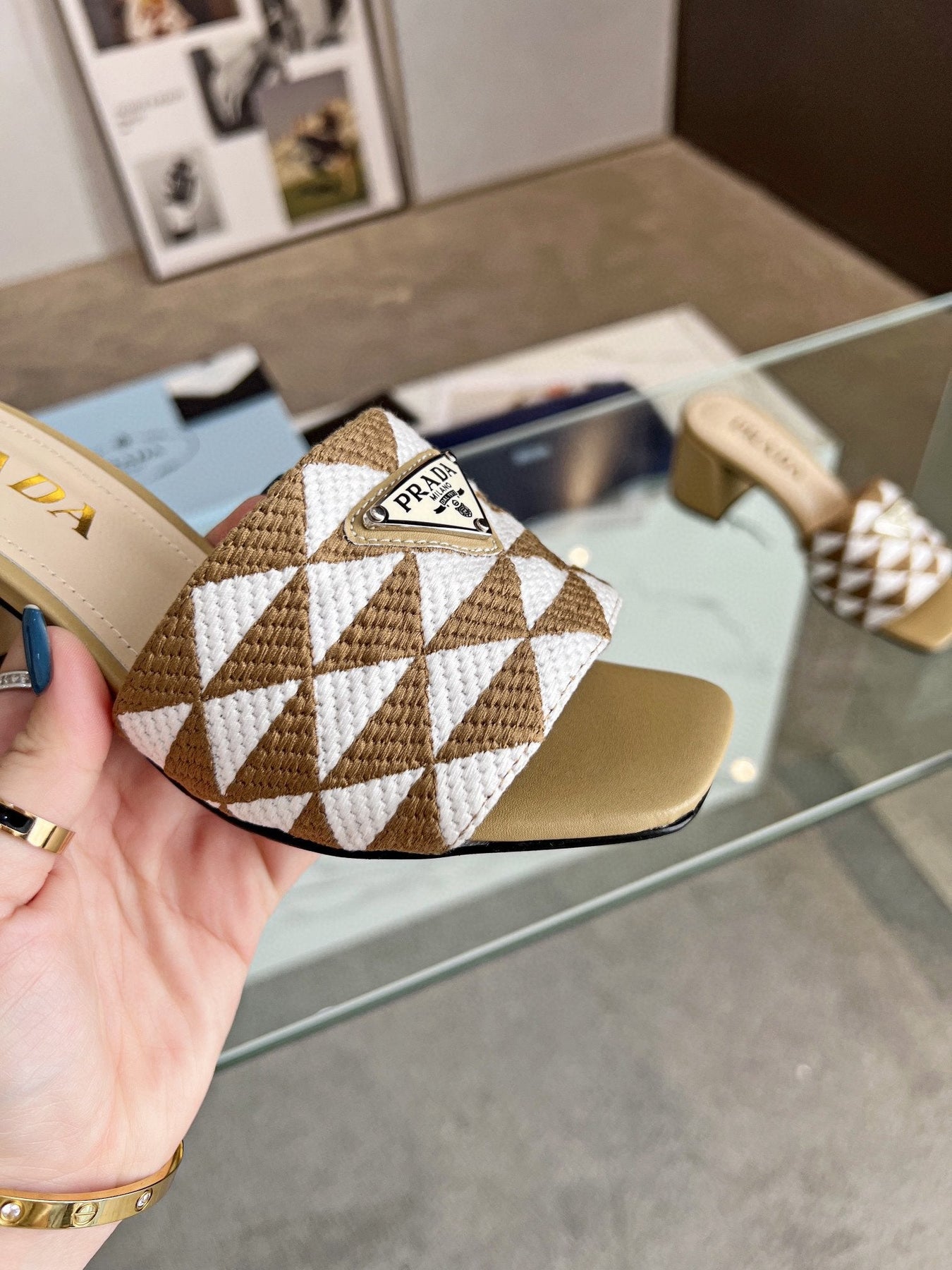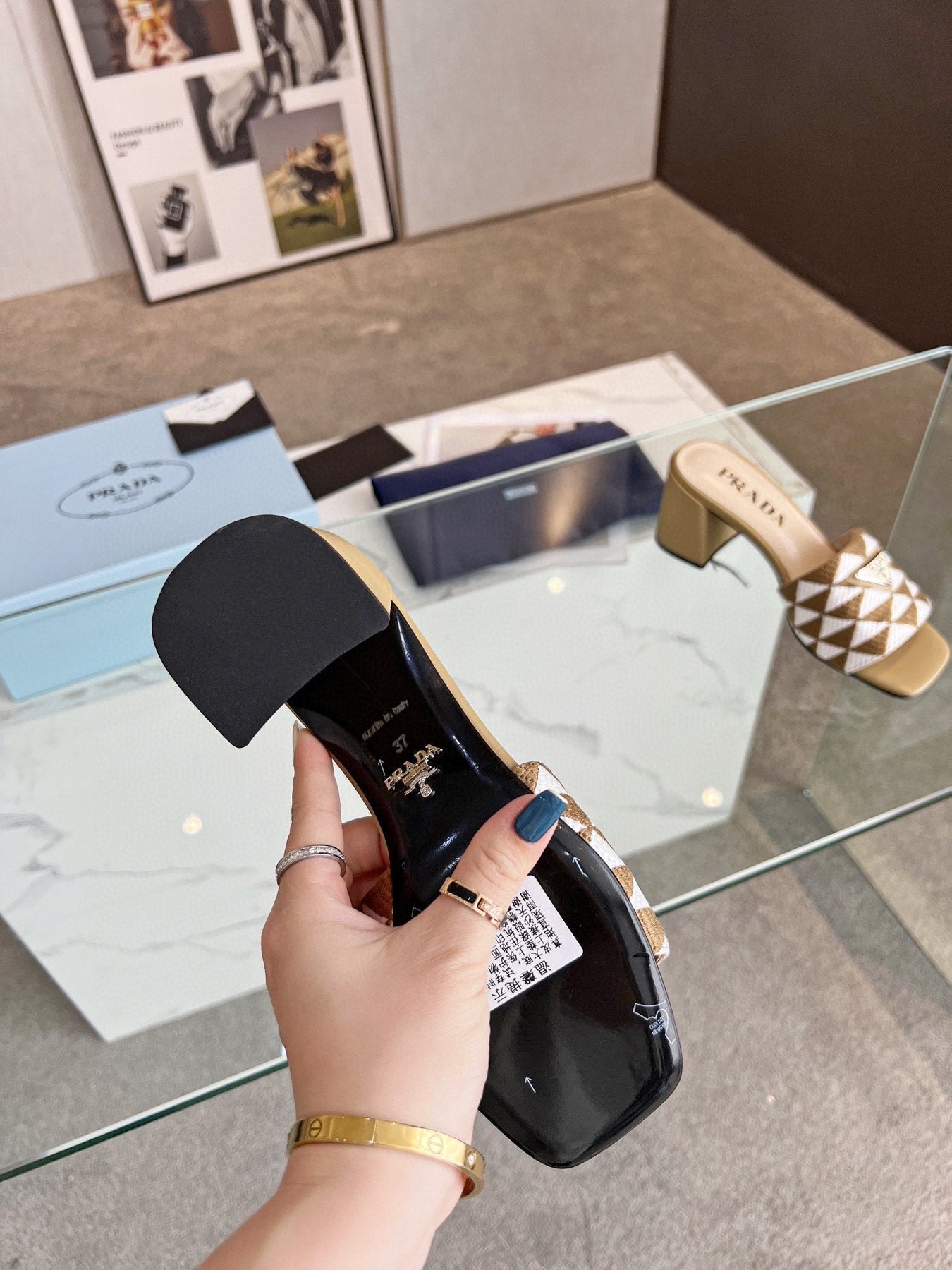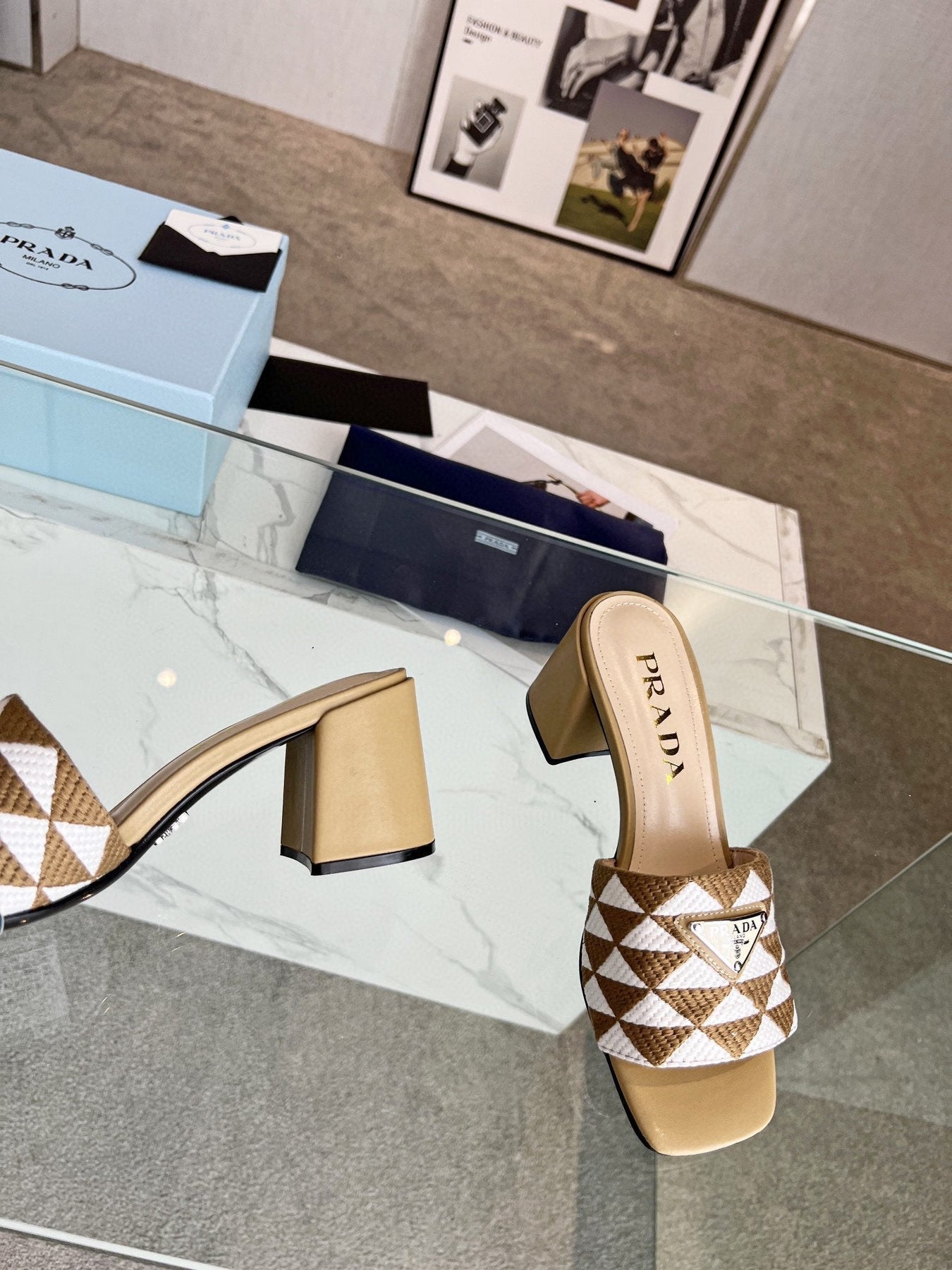PRA EMBROIDERED SLIDES 65 TAWNY AND WHITE FABRIC