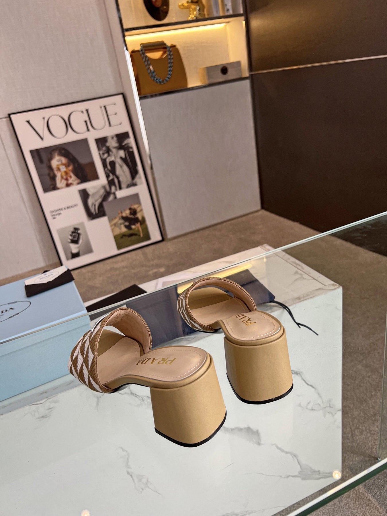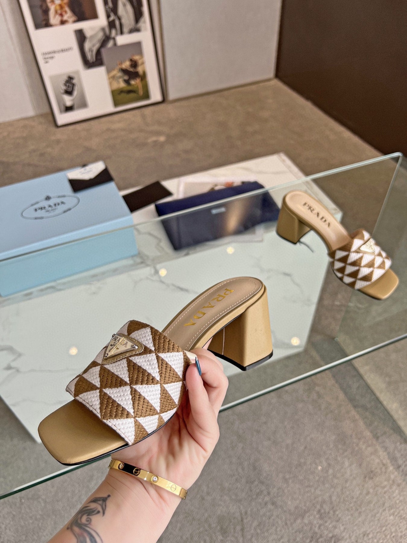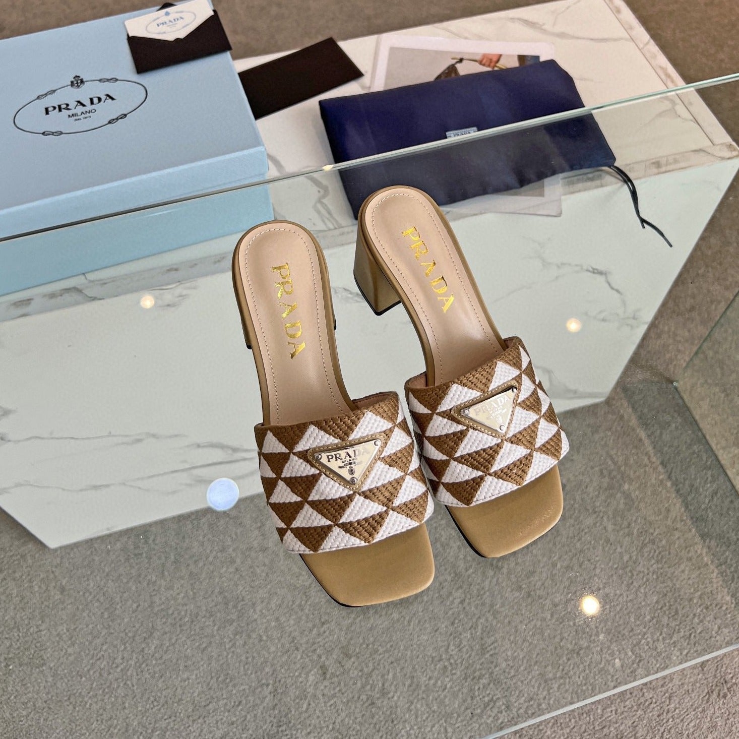 PRA EMBROIDERED SLIDES 65 TAWNY AND WHITE FABRIC