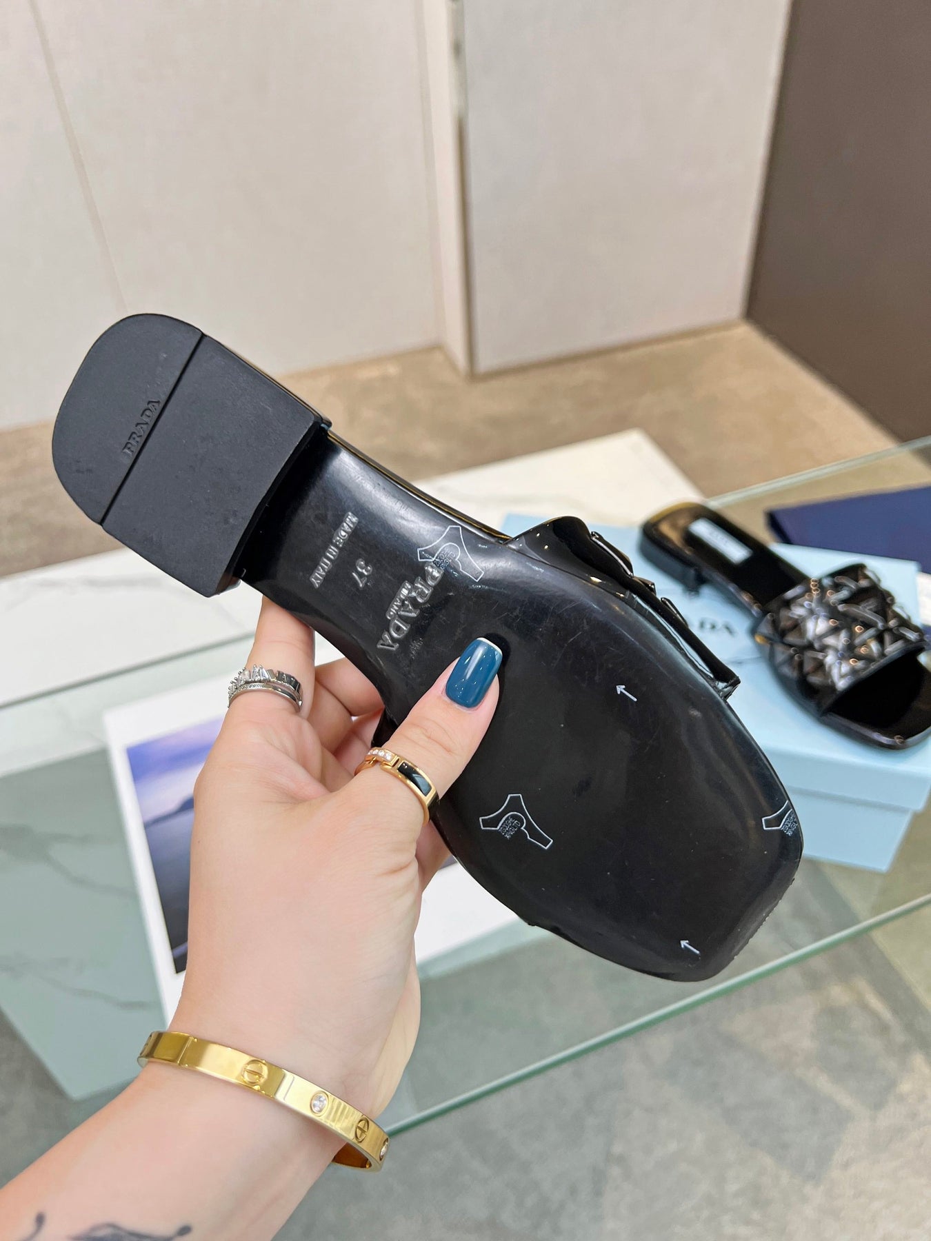 PRA EMBROIDERED SLIDES FLAT BLACK CALFSKIN