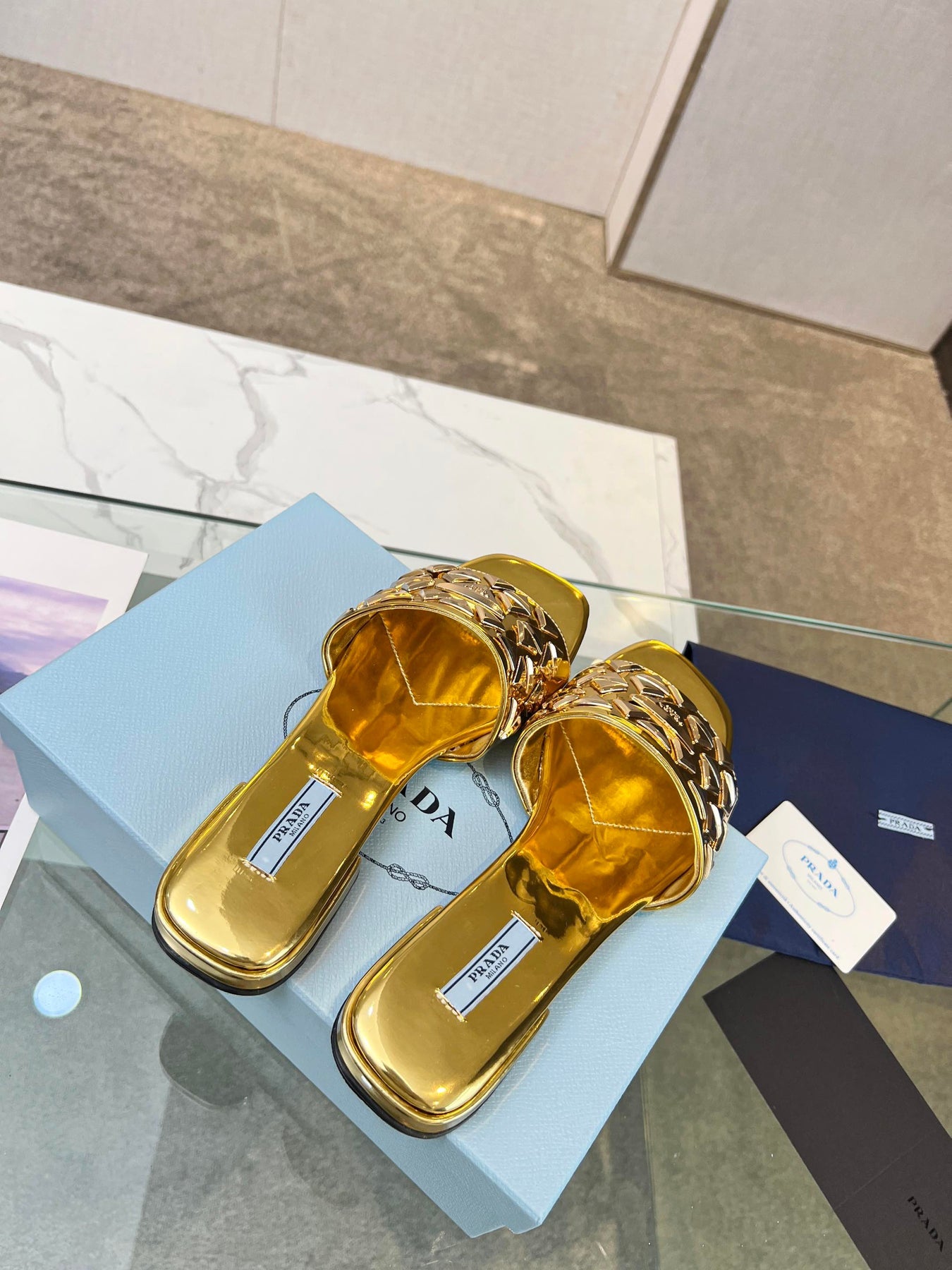PRA EMBROIDERED SLIDES FLAT METALLIC GOLD CALFSKIN