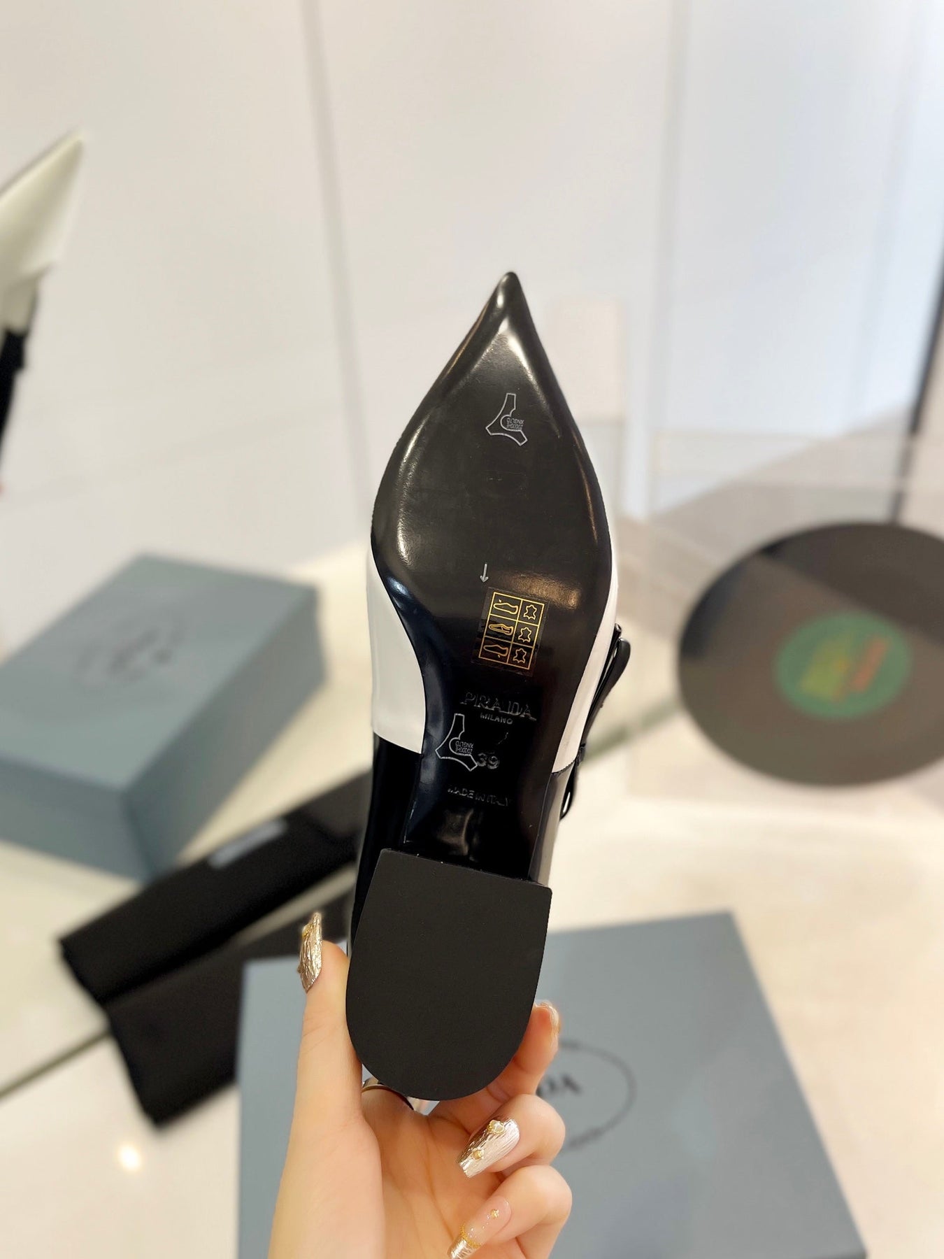 PRA MID - HEELS WHITE AND BLACK LAMBSKIN WITH BOW