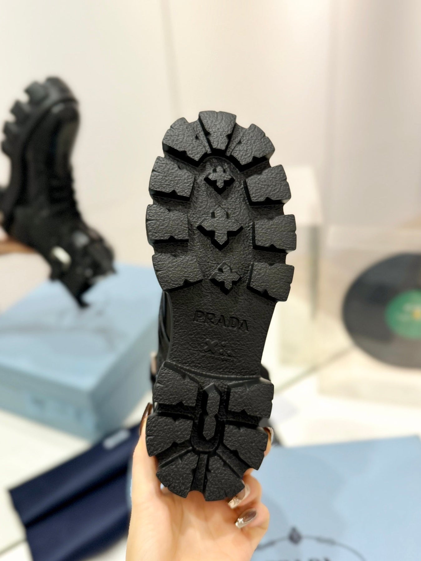PRA MONOLITH BRUSHED AND RE-NYLON BOOTS WITH POUCH TWINKLE BLACK CALFSKIN