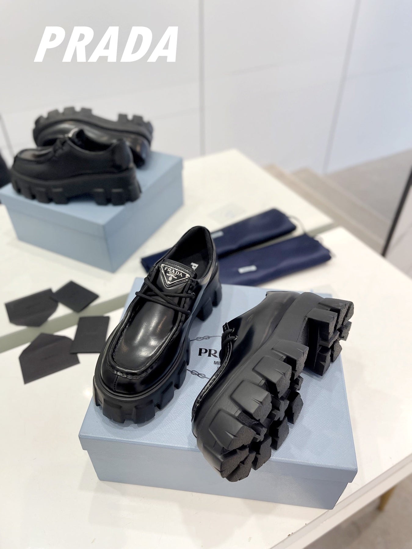 PRA MONOLITH LACE-UP LOAFERS BLACK CALFSKIN