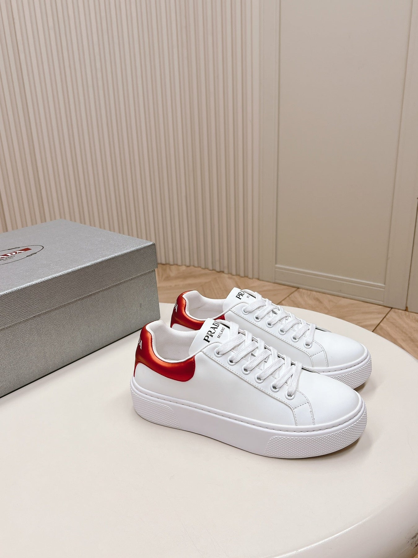 PRA RETRO SNEAKERS WHITE AND CRIMSON CALFSKIN