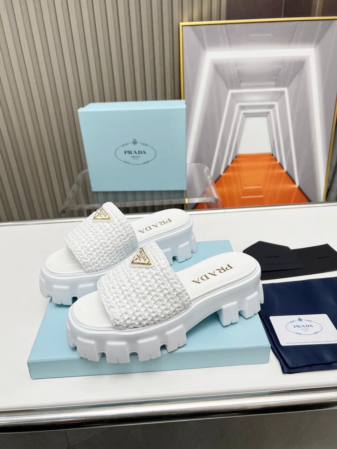 PRA THICK-SOLED CROCHET SANDALS WHITE WOVEN FABRIC
