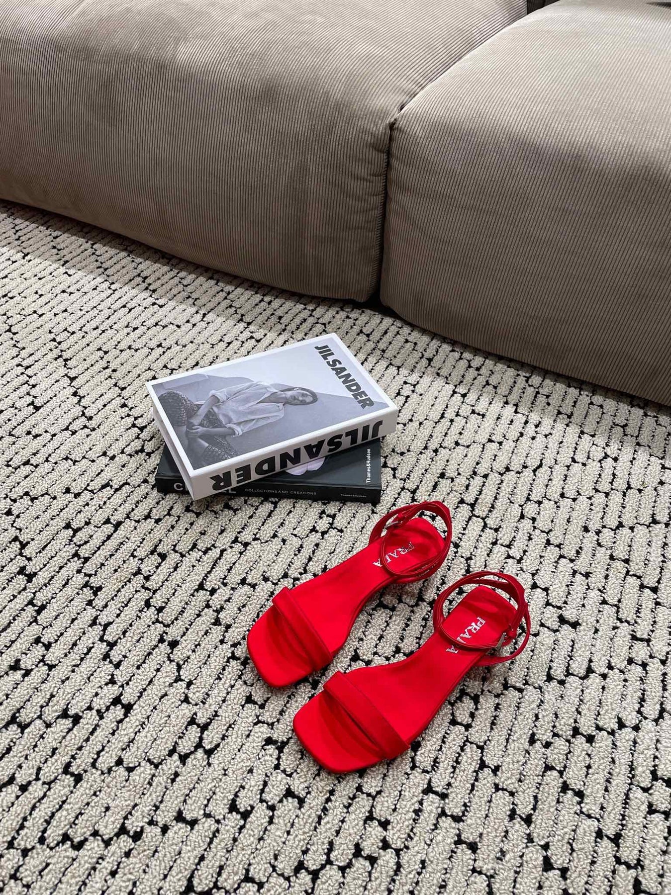 PRA TRIANGLE HEEL SATIN SANDALS CRIMSON