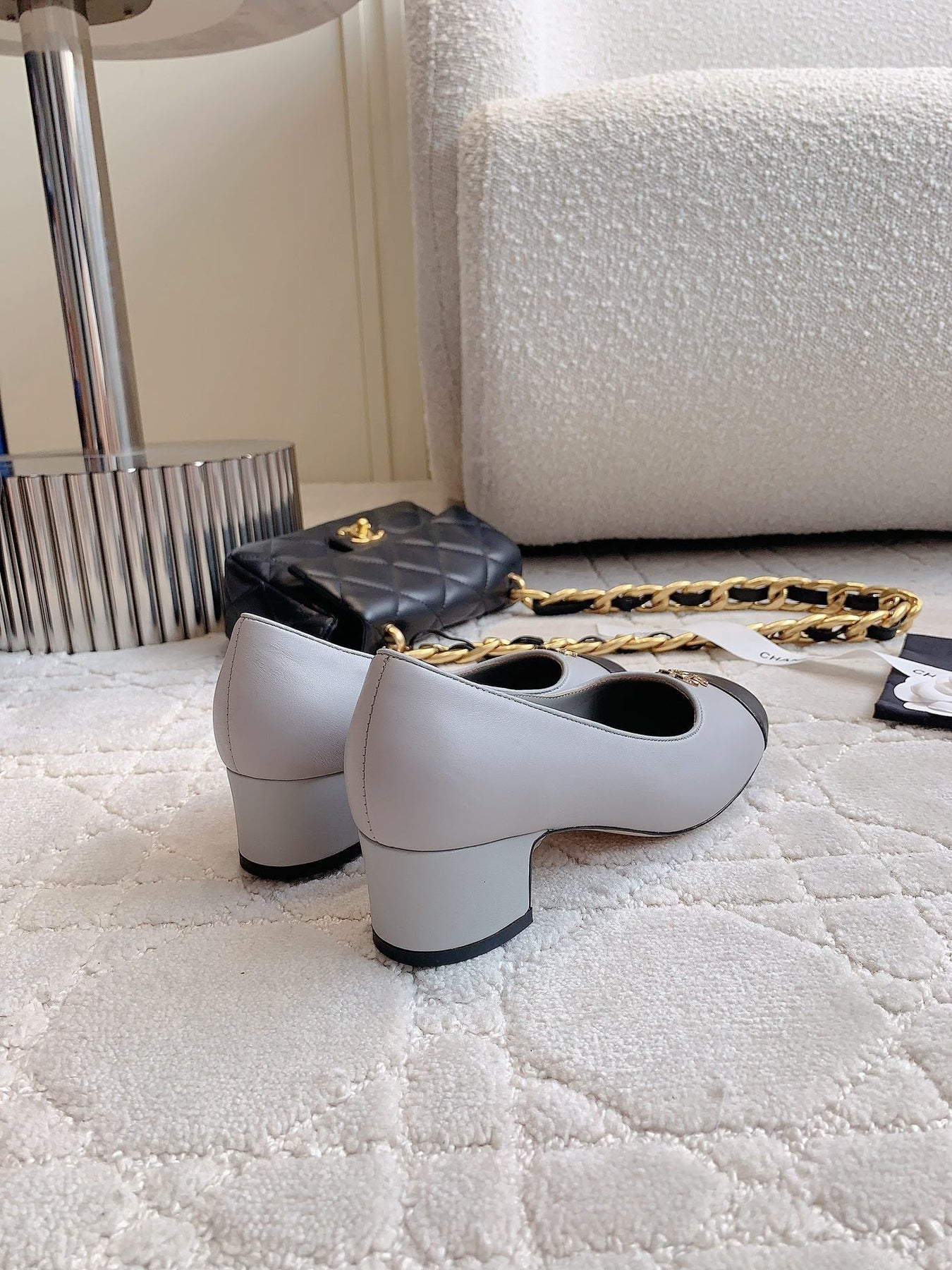 PUMP ROUNG TOE IN SLATE GREY MIX BLACK SHEEPSKIN
