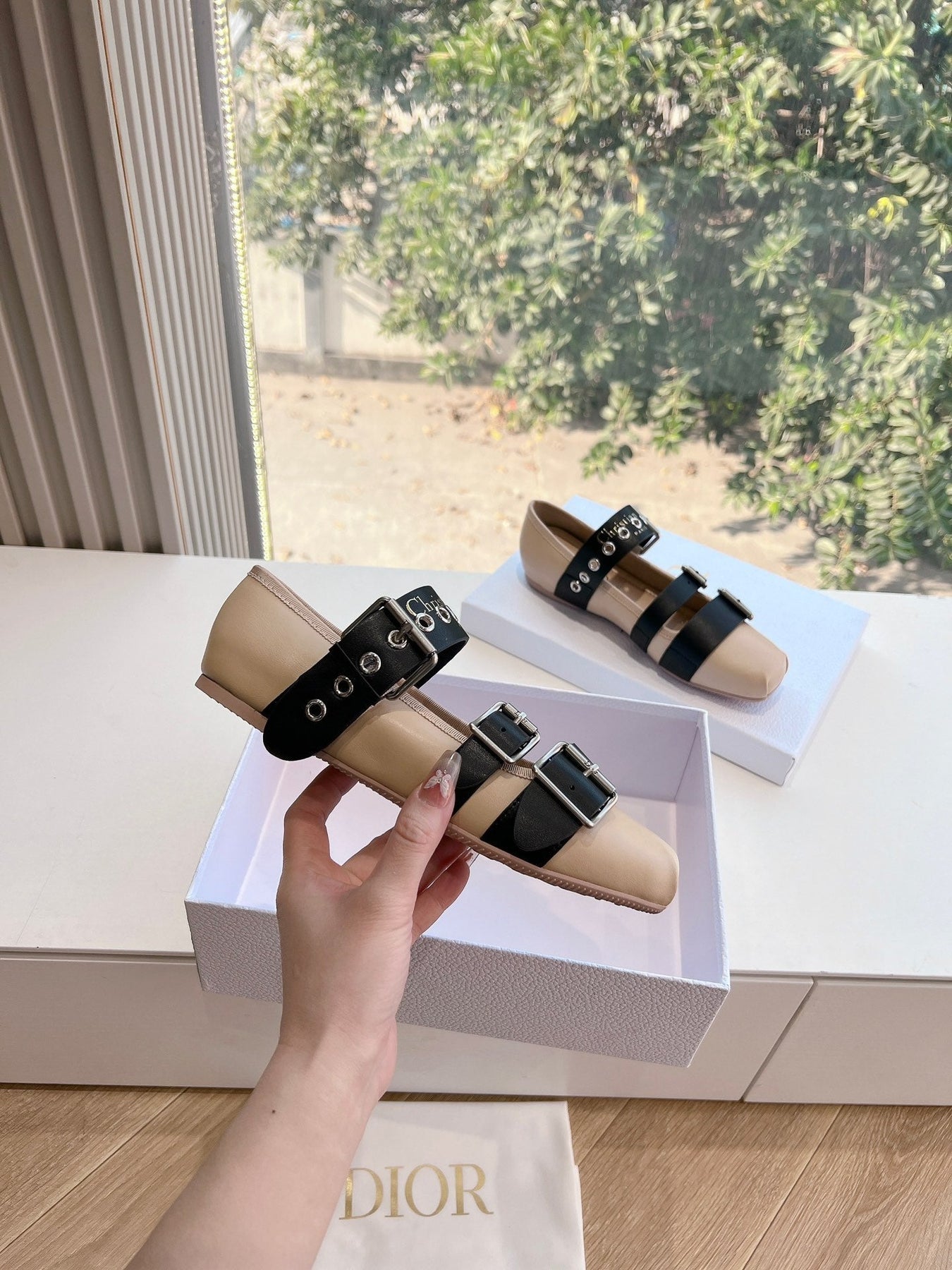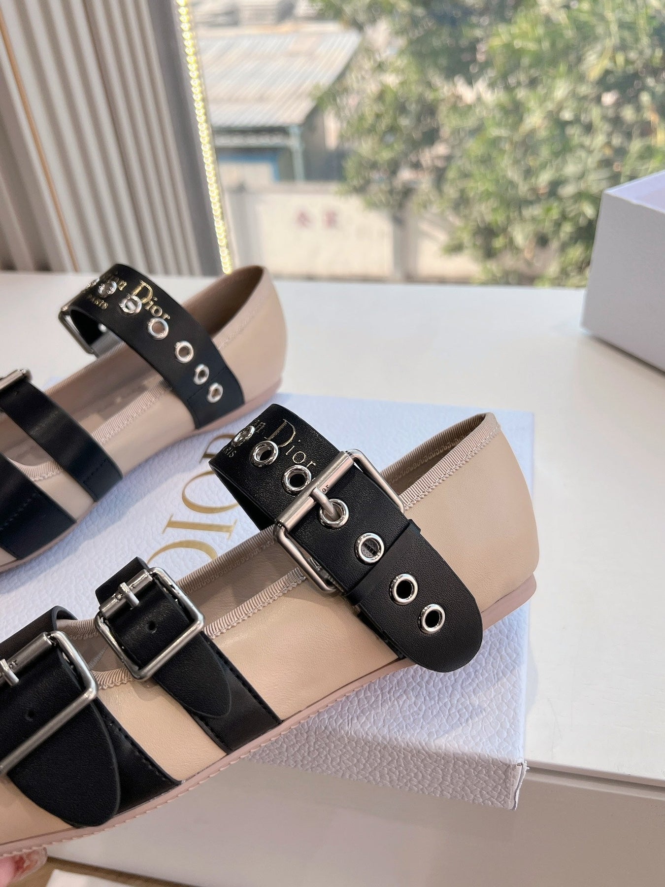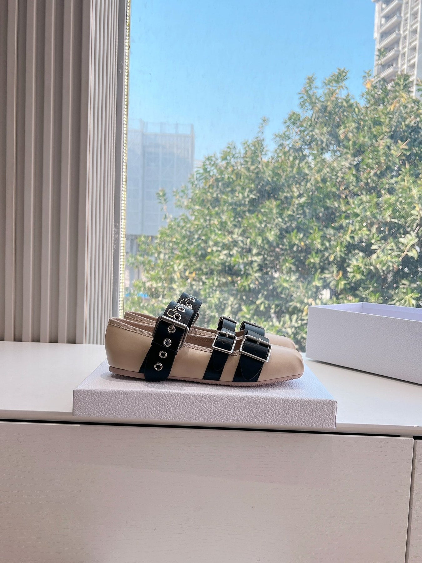PUNK BALLET FLAT IN CAMEL BEIGE MIX BLACK SUPPLE CALFSKIN