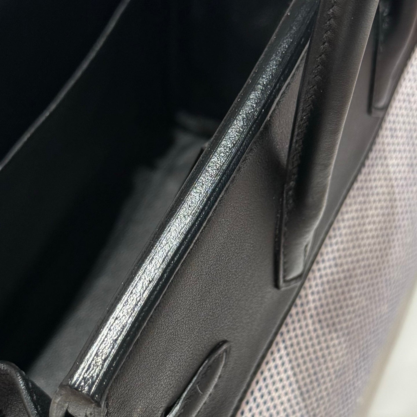 QUADRILLE BIRKIN 25CM IN BLACK SWIFT CALFSKIN WHITE BLUE PINK PLAID TOILE CANVAS