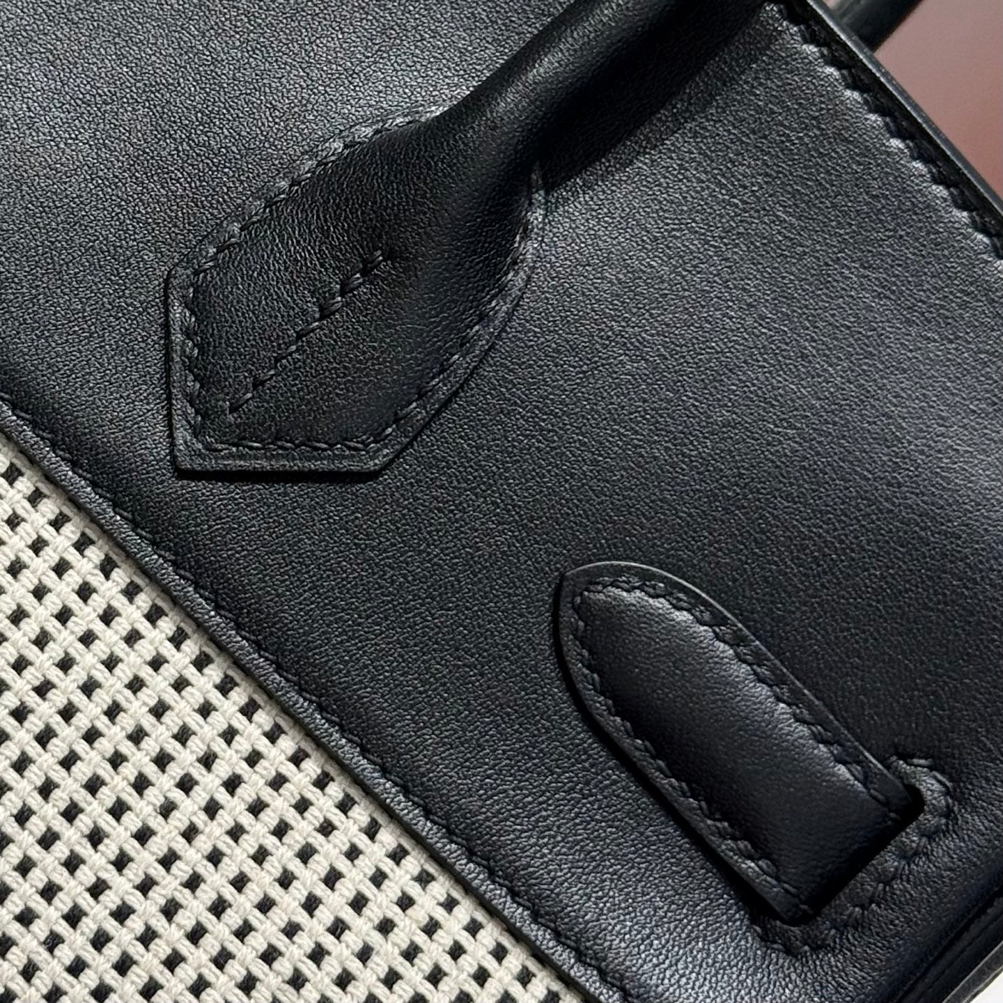QUADRILLE BIRKIN 30CM IN BLACK SWIFT CALFSKIN WHITE BLACK PLAID TOILE CANVAS