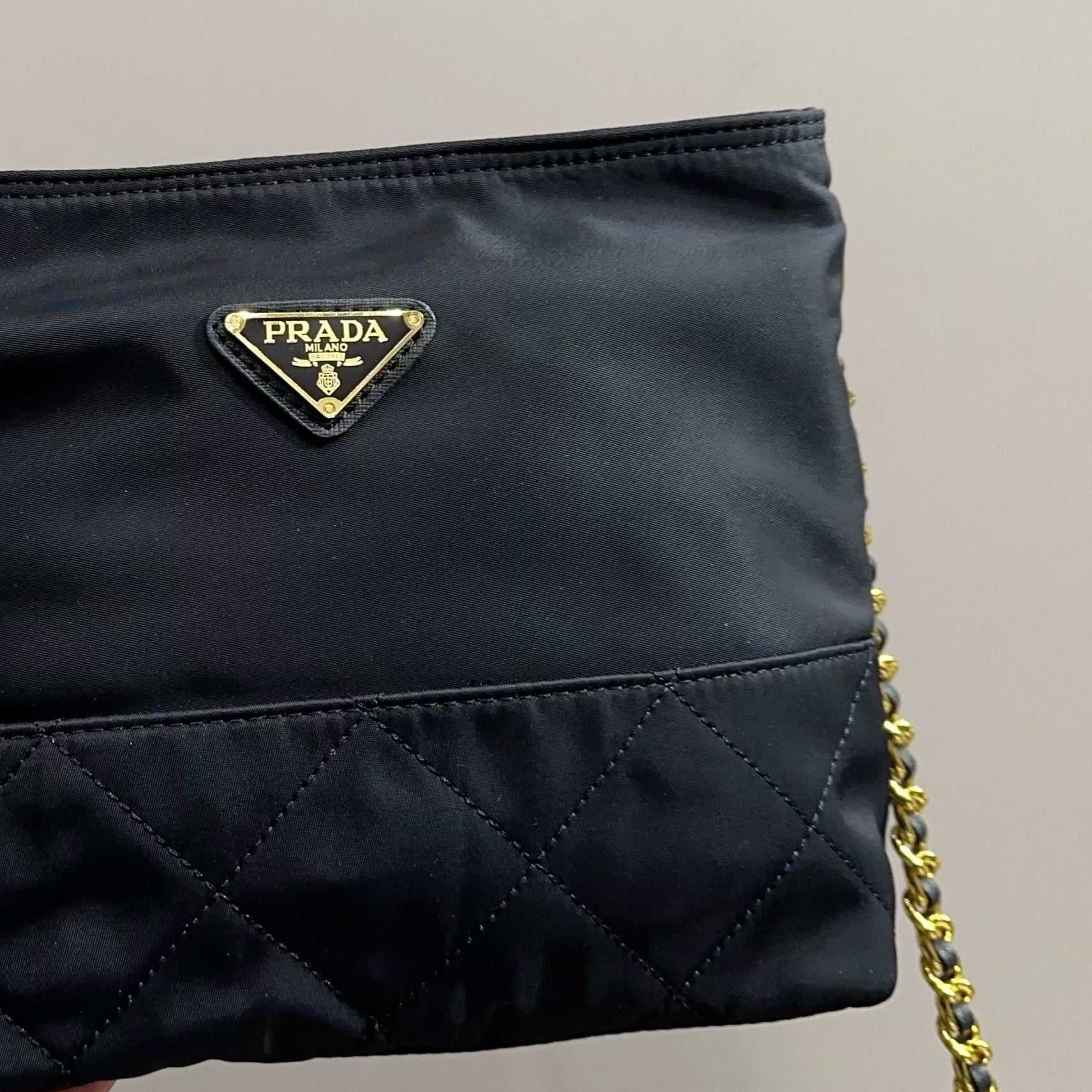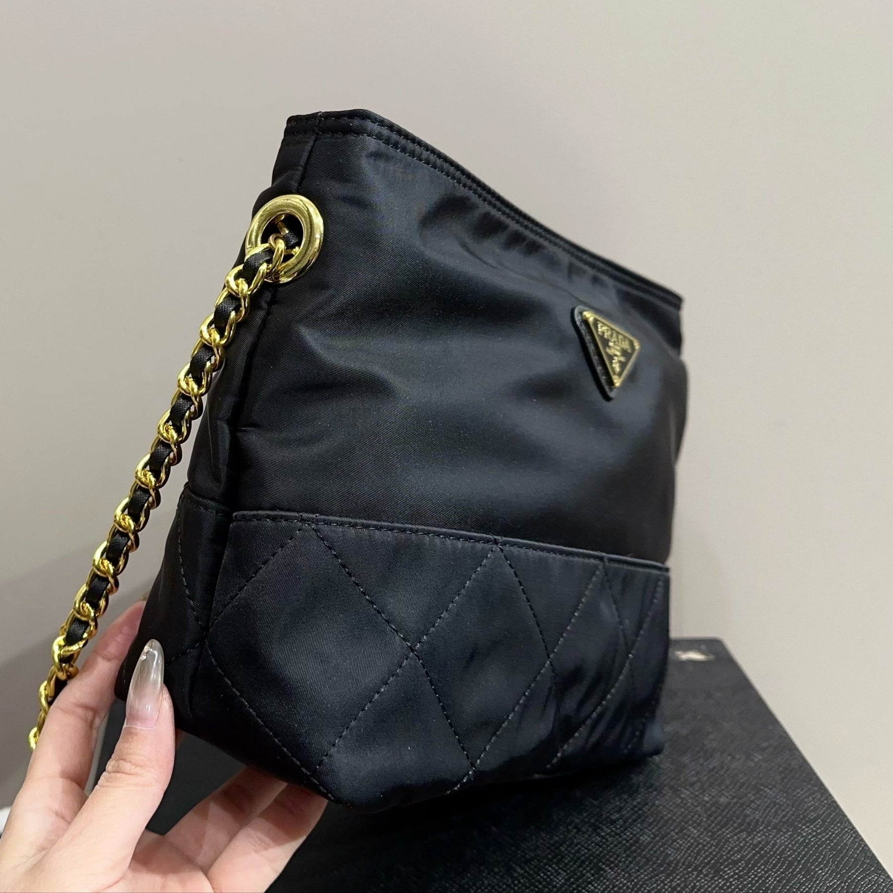 QUILTED CHAIN SHOULDER BAG 22 IN BLACK RE-NYLON