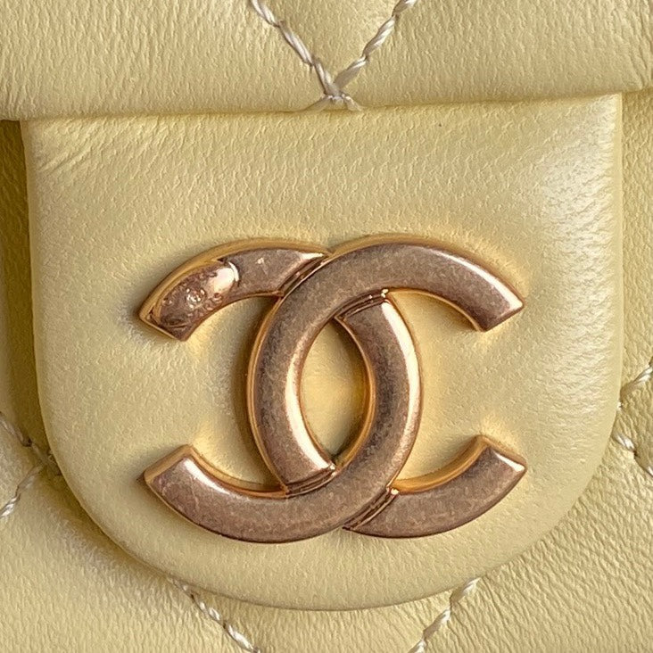 QUILTED HOBO CARGO BAG 31 IN LIGHT YELLOW CALFSKIN GOLD CHAIN