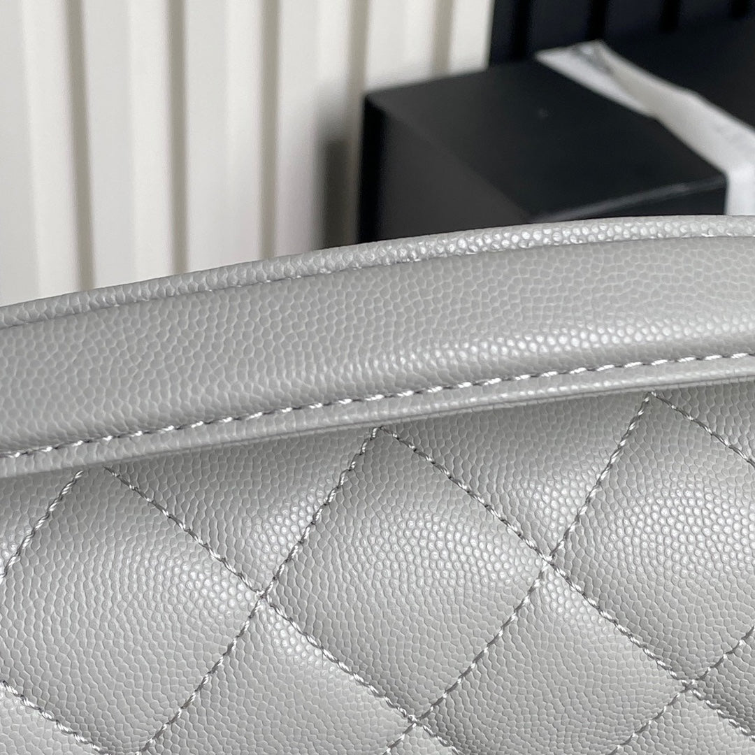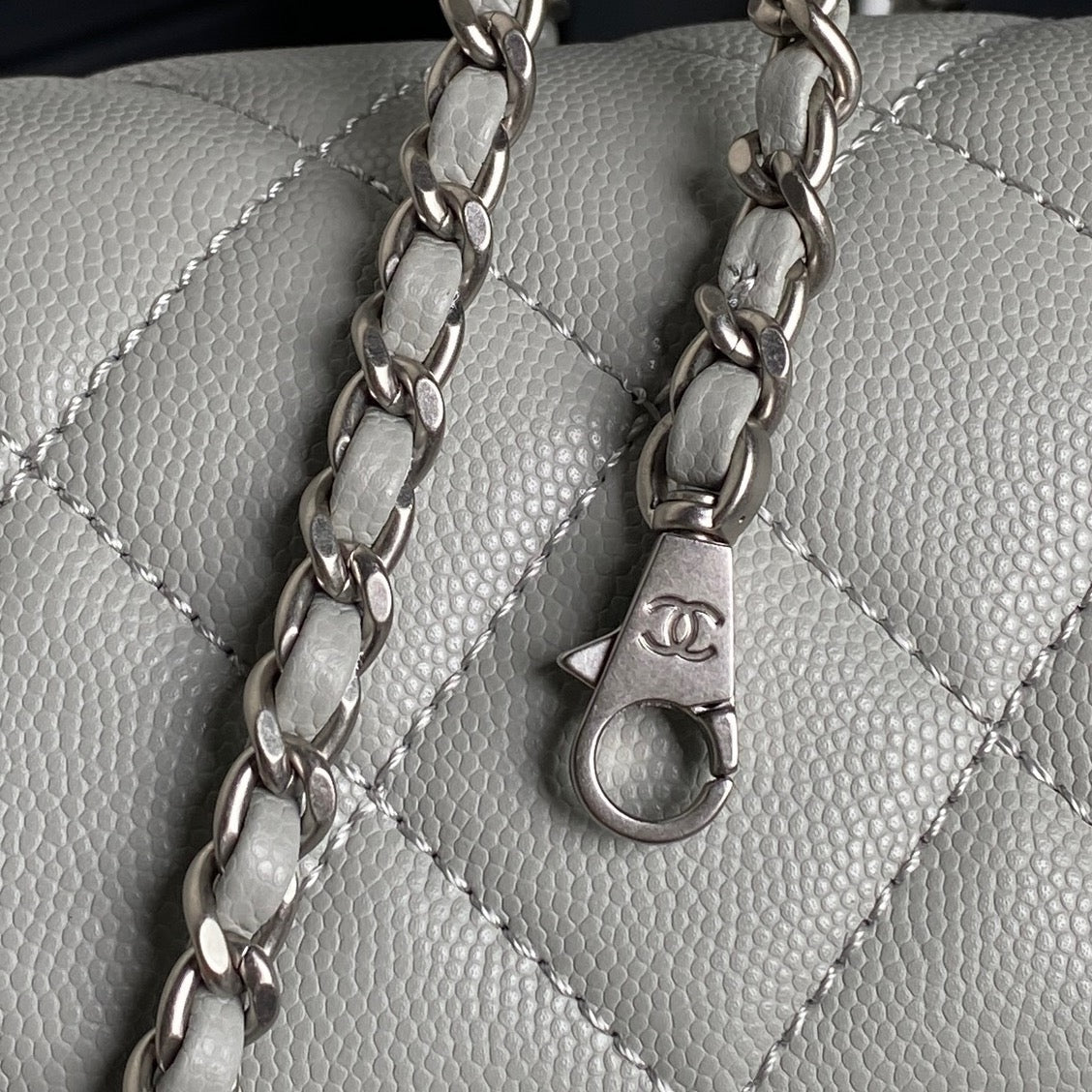 RETRO STYLE FLAP BAG 19 IN RHINO GRAY GRAINED CALFSKIN GOLD HARDWARE