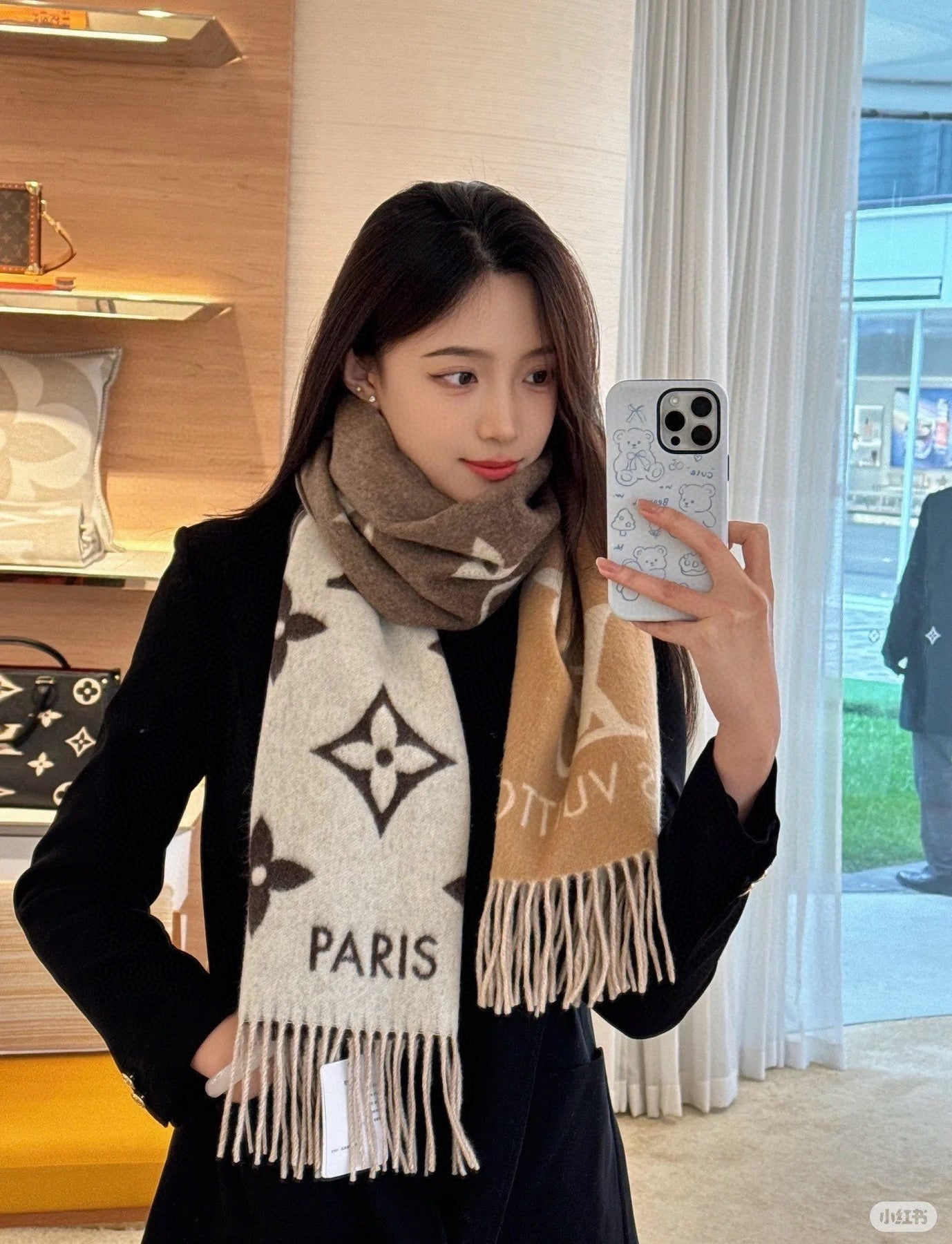 REYKJAVIK GRADIENT SCARF 220 CM IN CHOCOLATE MIX COPPER BROWN CASHMERE 399738