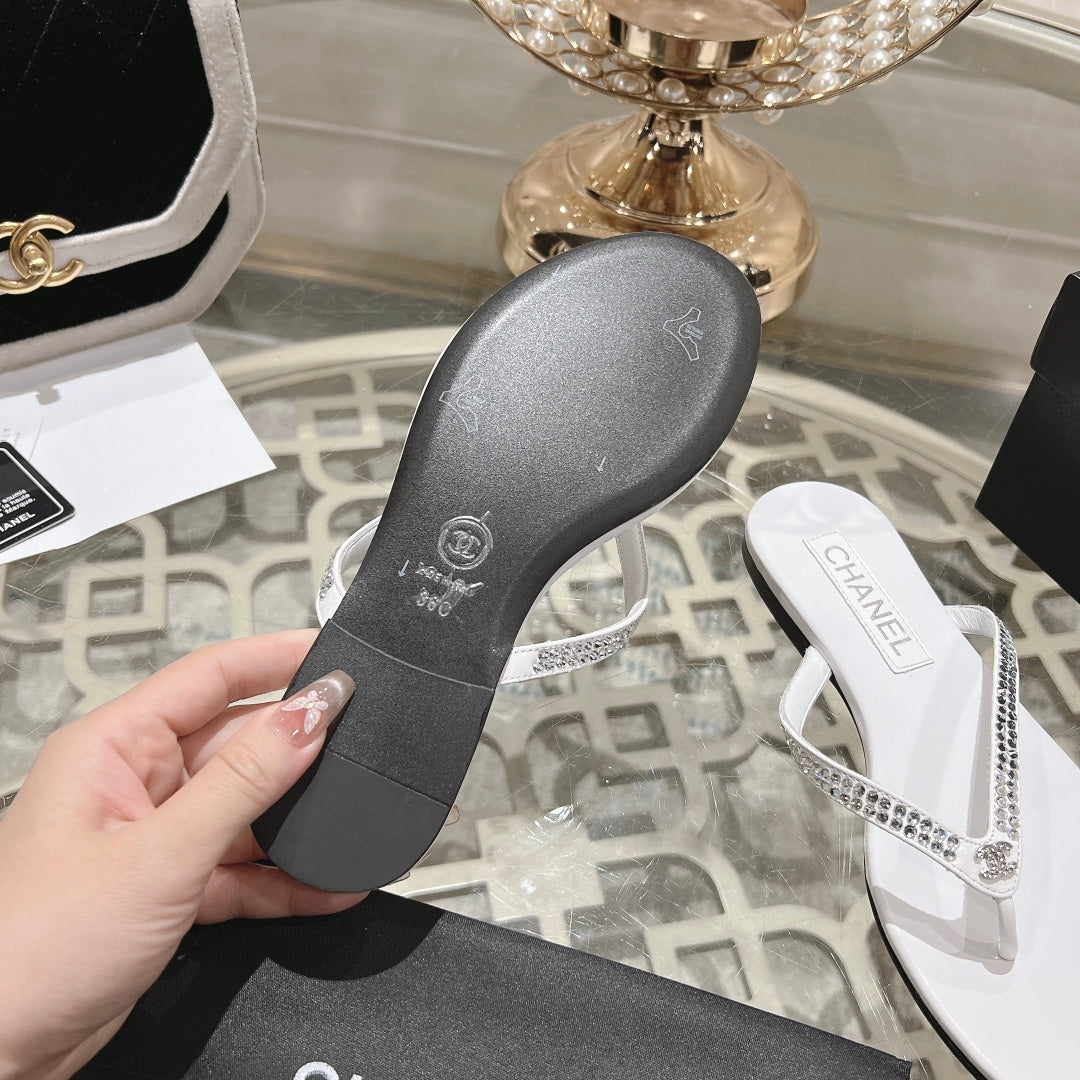 RHINESTONES THONG SANDAL IN WHITE LAMBSKIN