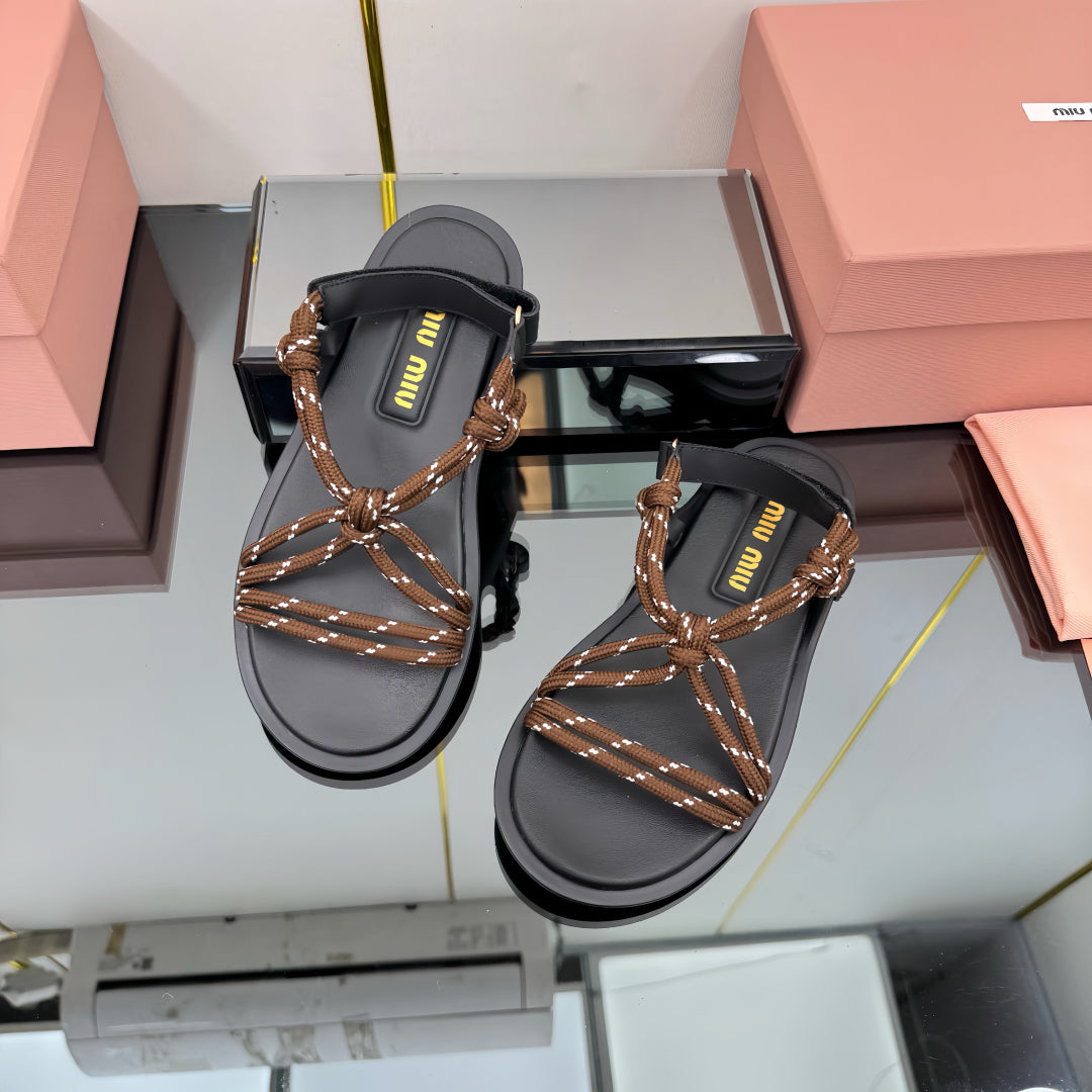 RIVIERE SANDALS IN BLACK CALFSKIN BROWN CORD