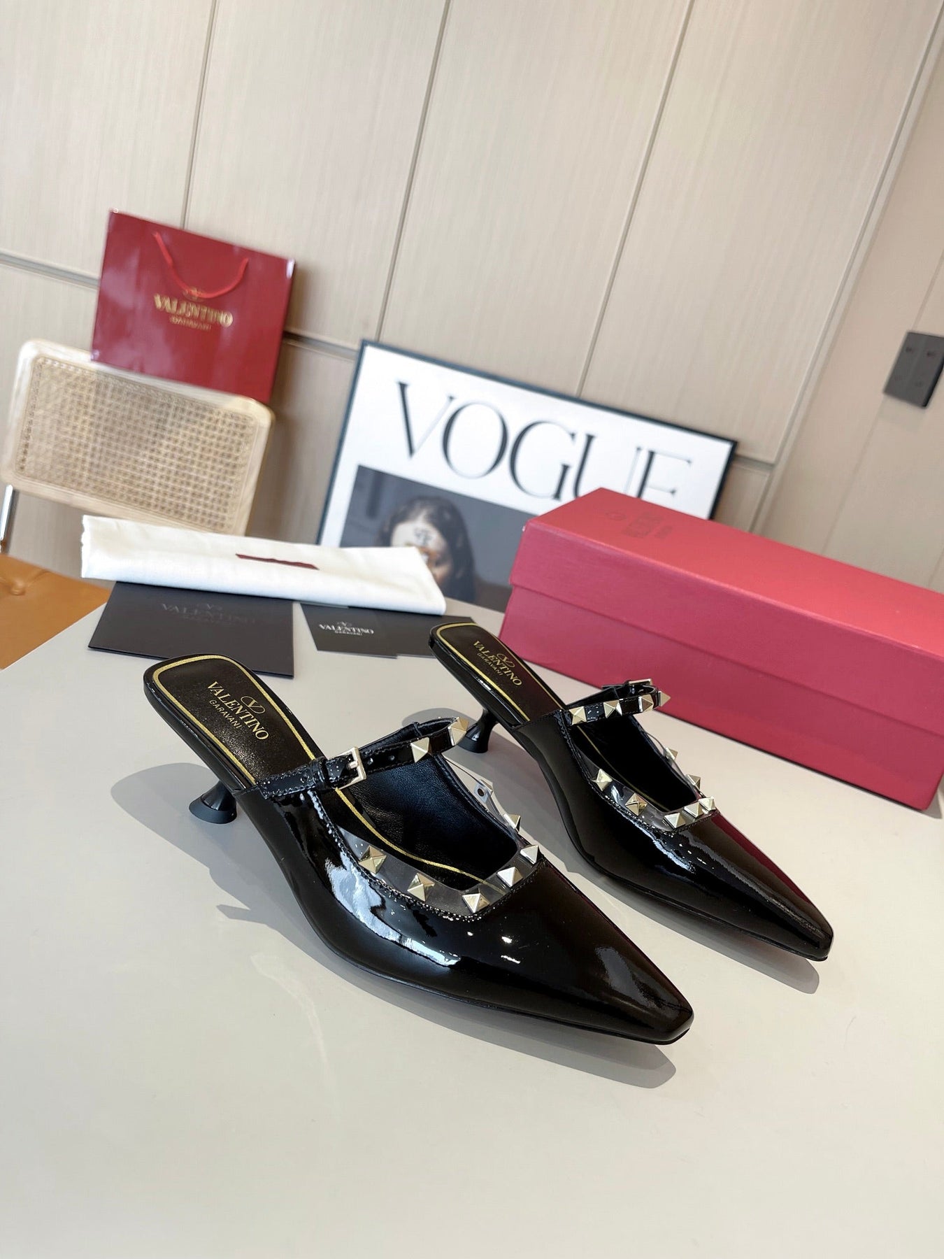 ROCKSTUD CAGED MULES 5 CM IN BLACK CALFSKIN