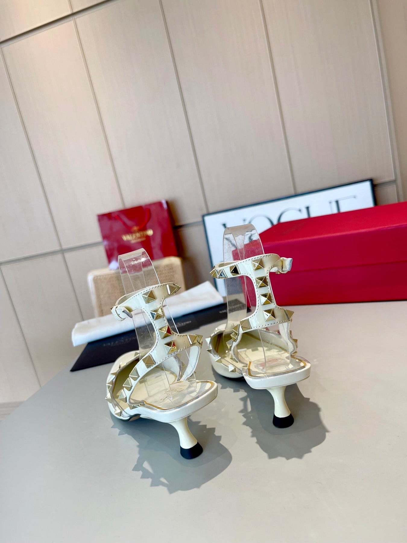 ROCKSTUD CAGED SLINGBACKS 5 CM IN WHITE CALFSKIN