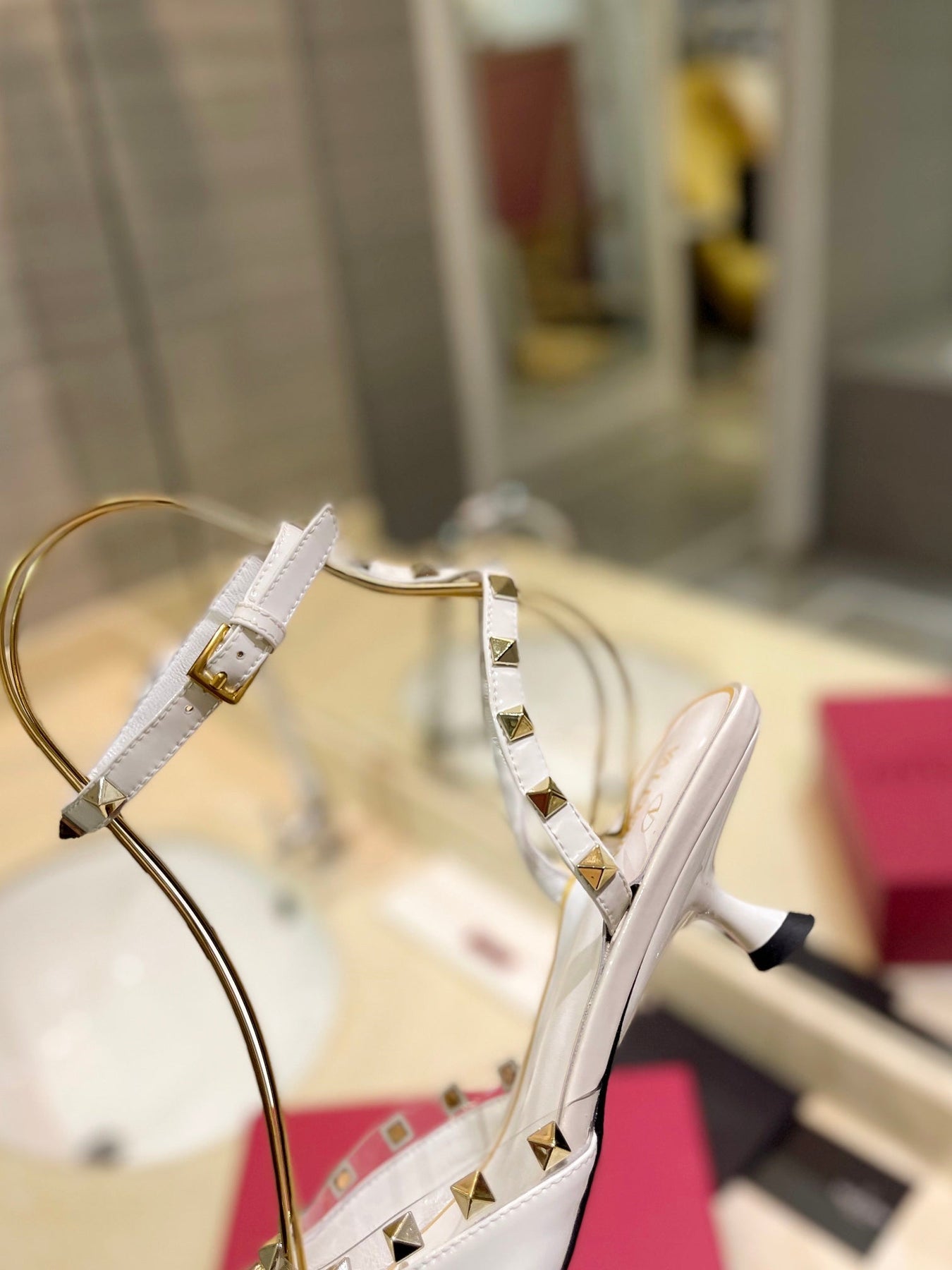 ROCKSTUD SLINGBACK IN WHITE CALFSKIN 50MM