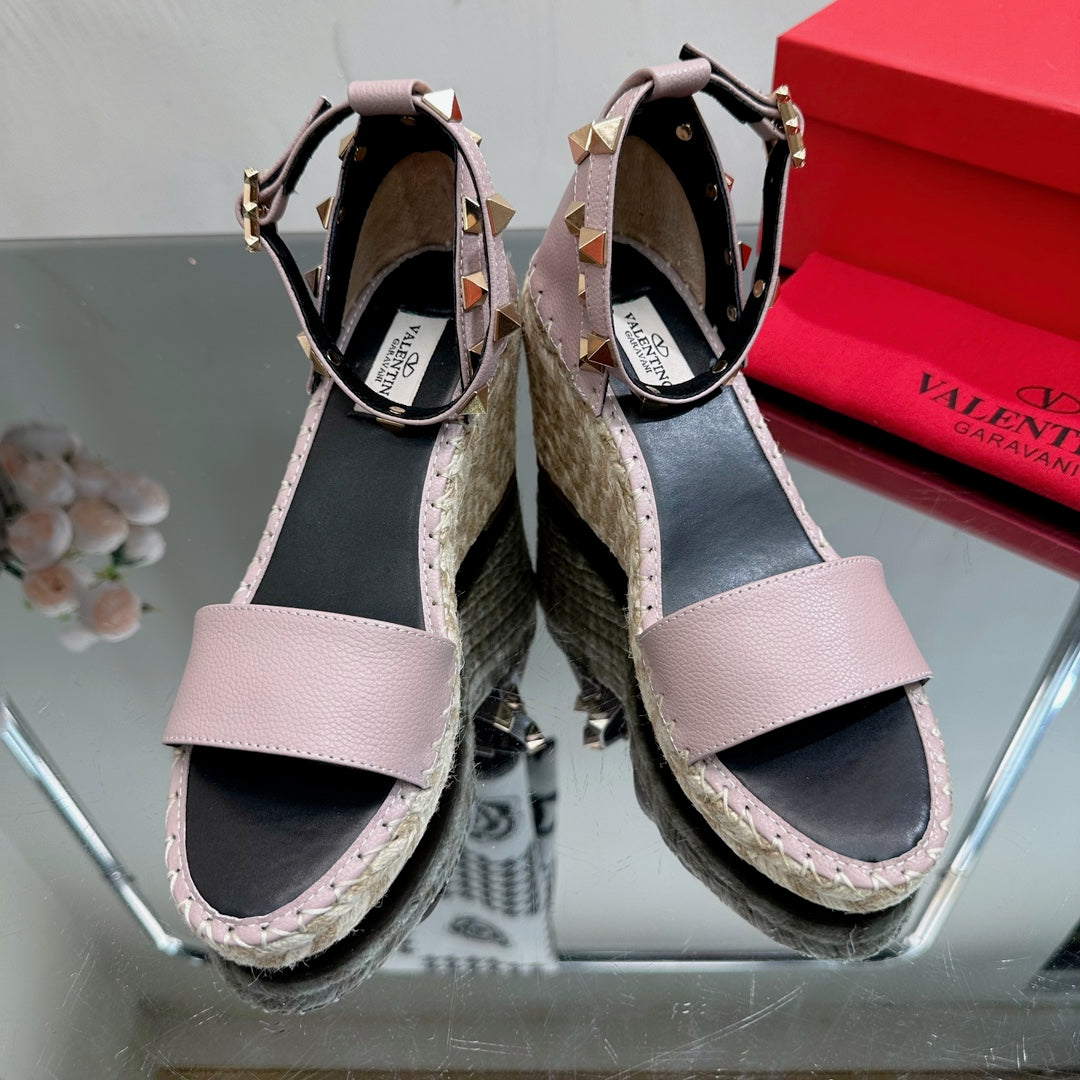 ROCKSTUD WEDGE 85 MM IN CREPE PINK CALFSKIN